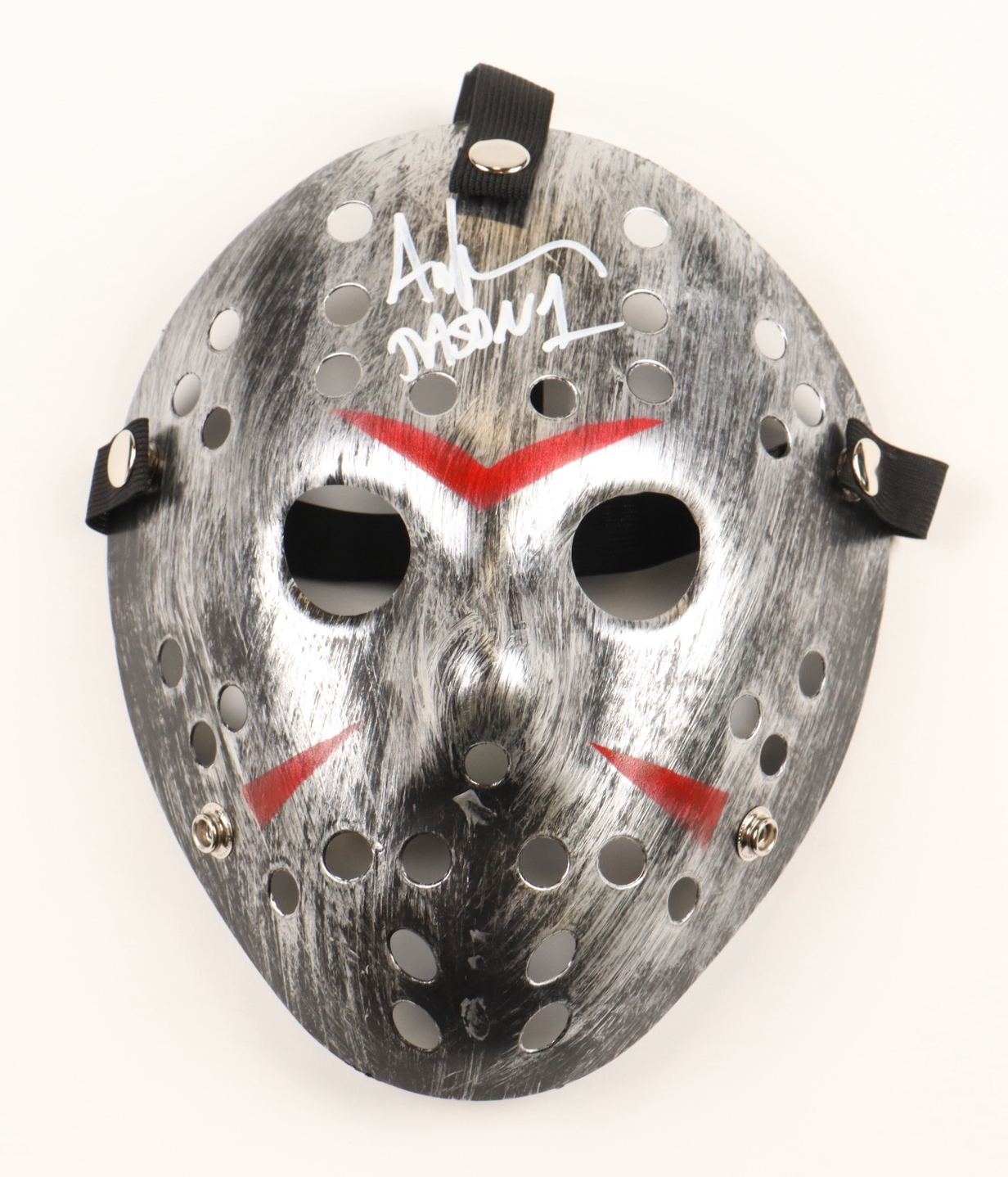 "Friday the 13th" Jason Voorhees full-size replica mask. Hand-signed and inscribed by Ari Lehman (Jason Voorhees).