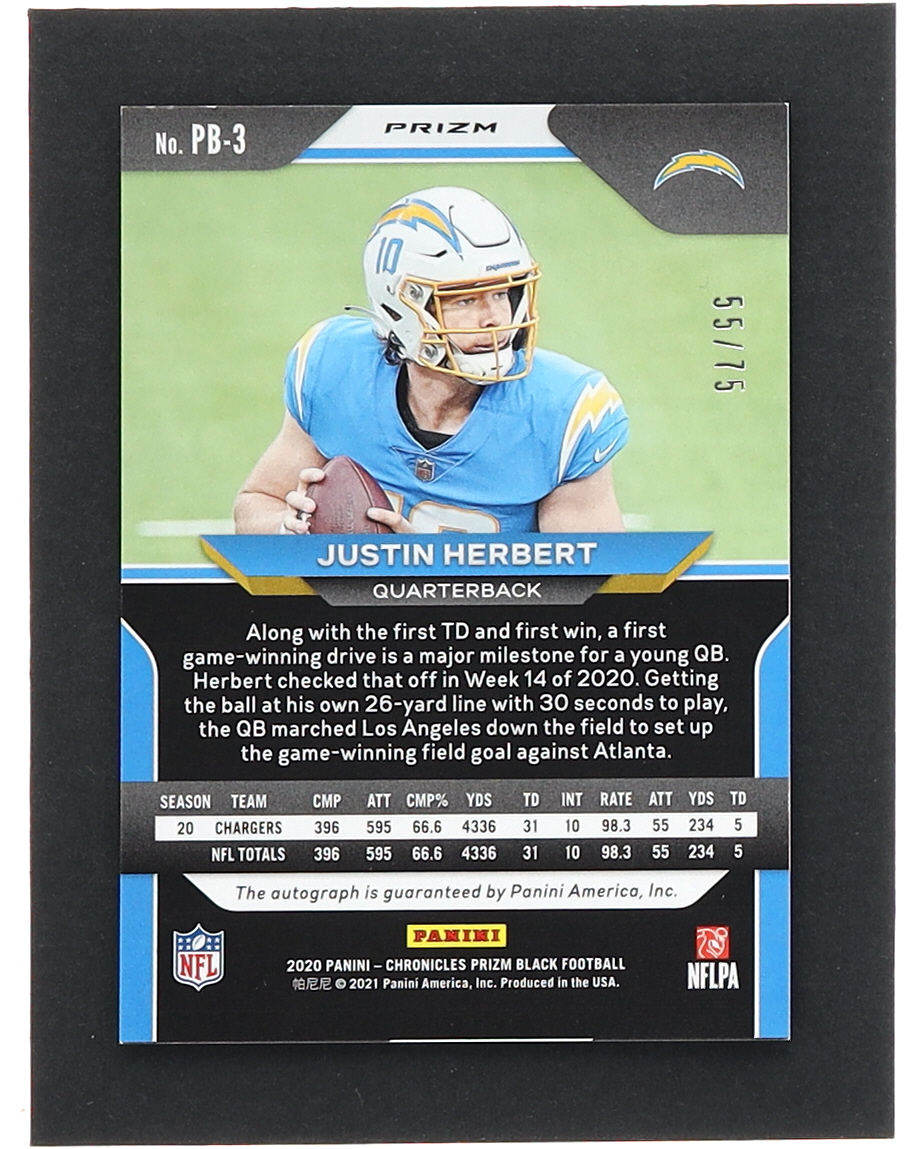 Justin Herbert 2020 Panini Prizm Black Signatures Orange #3 RC #55/75