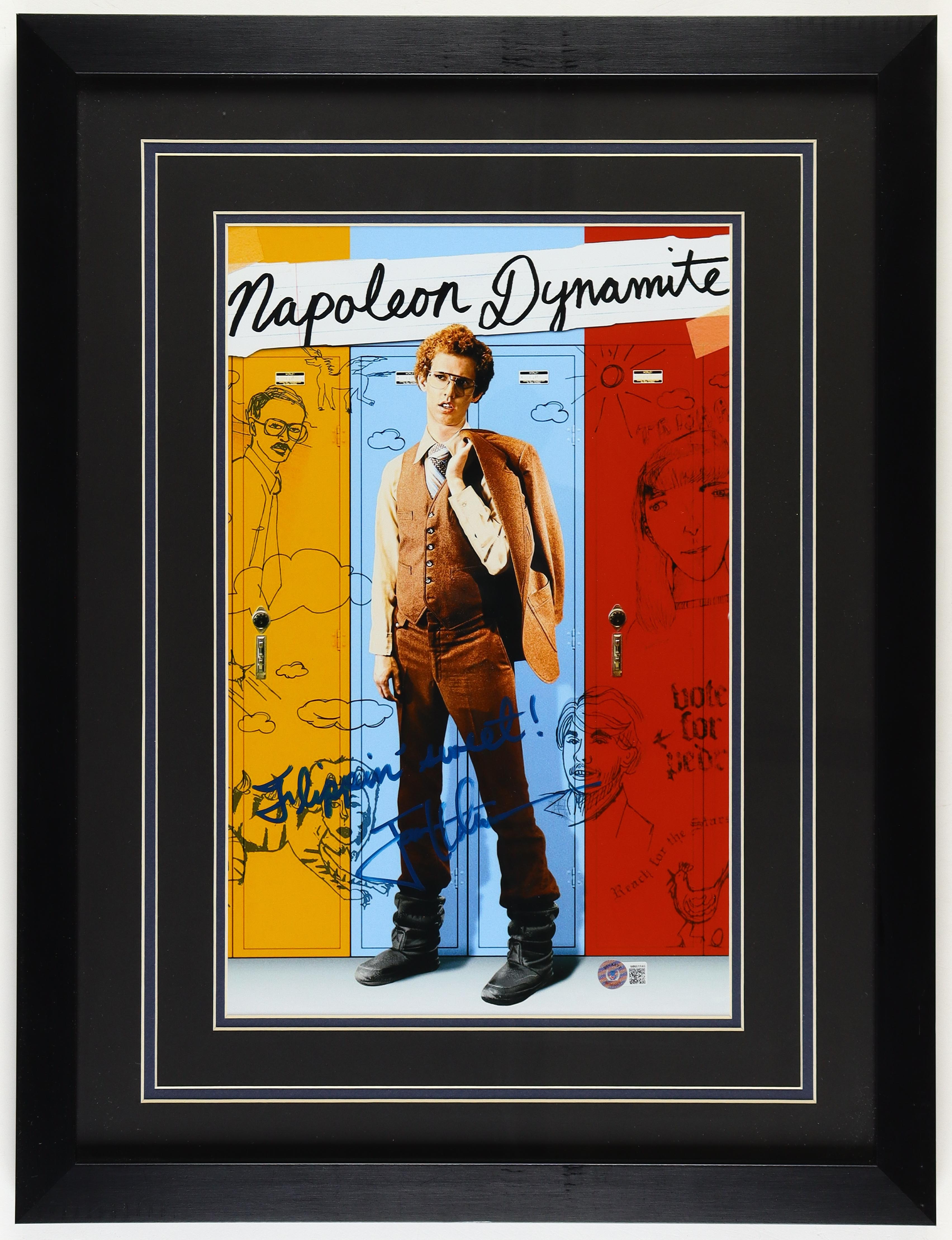 Custom frame measures approximately 19" x 25" in size and features a photo that has been hand-signed and inscribed by Jon Heder (Napoleon Dynamite).