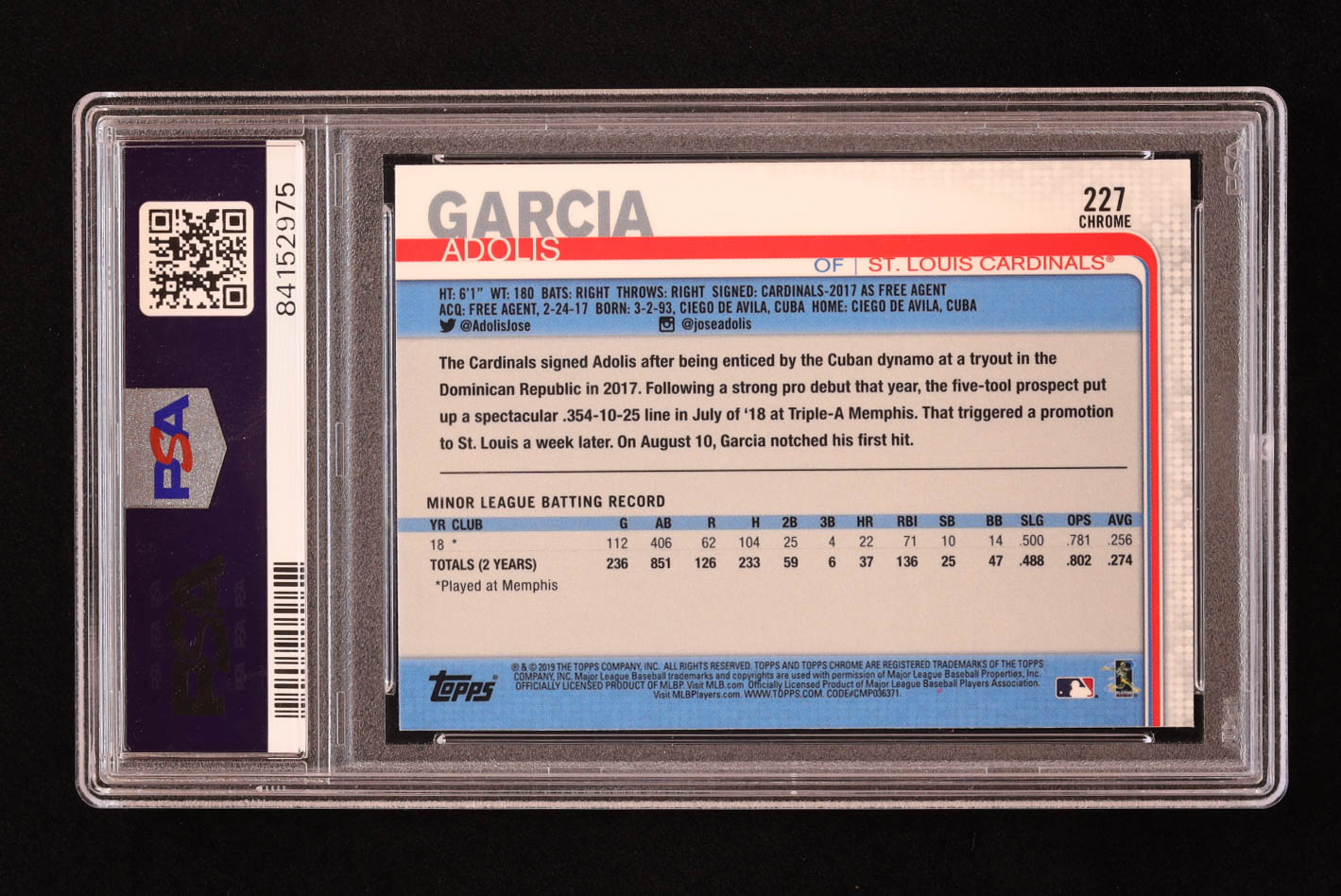 Adolis Garcia 2019 Topps Chrome Sapphire #227 RC (PSA 10)