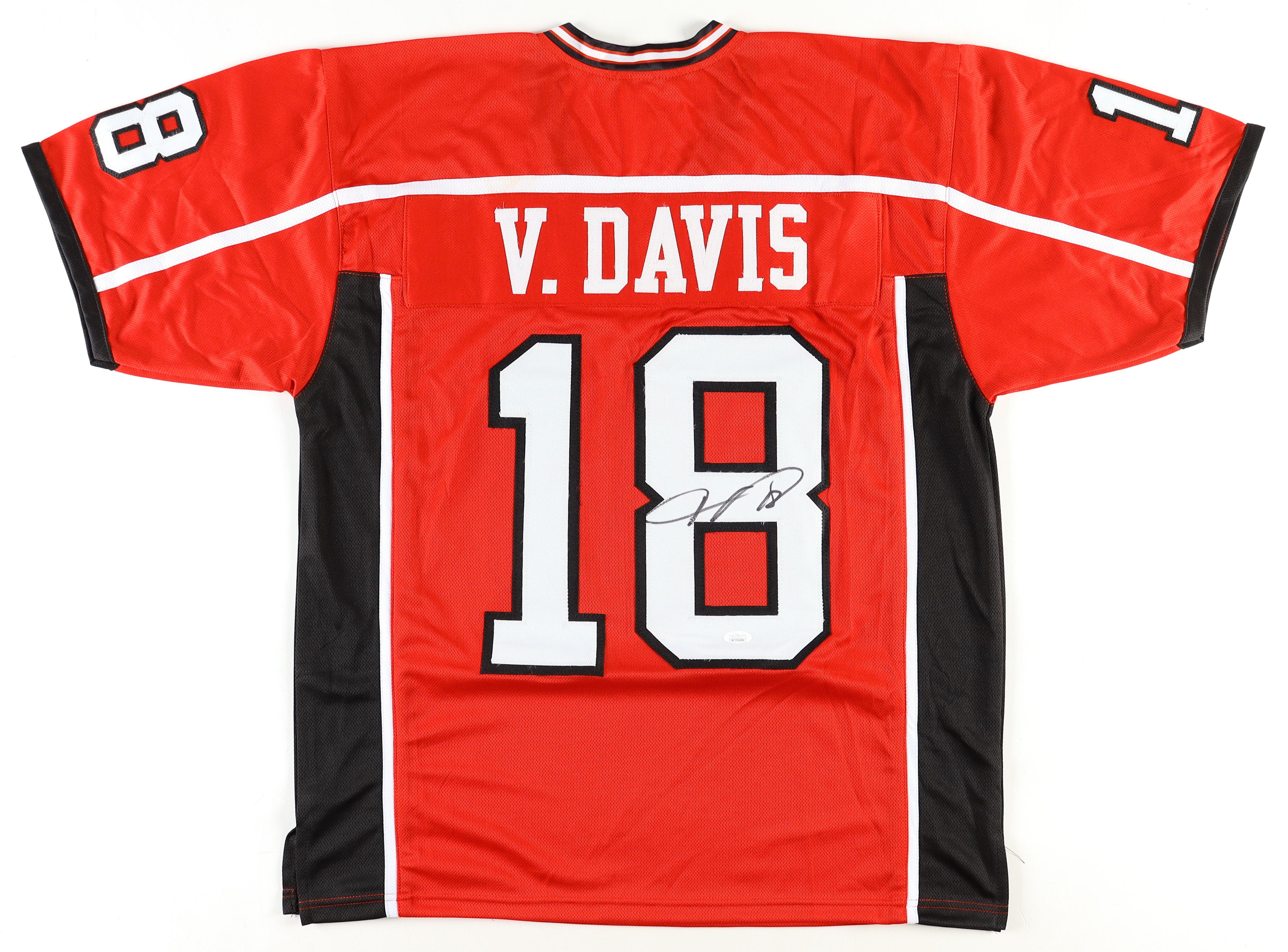 Custom jersey. Everything is sewn on, size XL. Hand-signed by Vernon Davis.