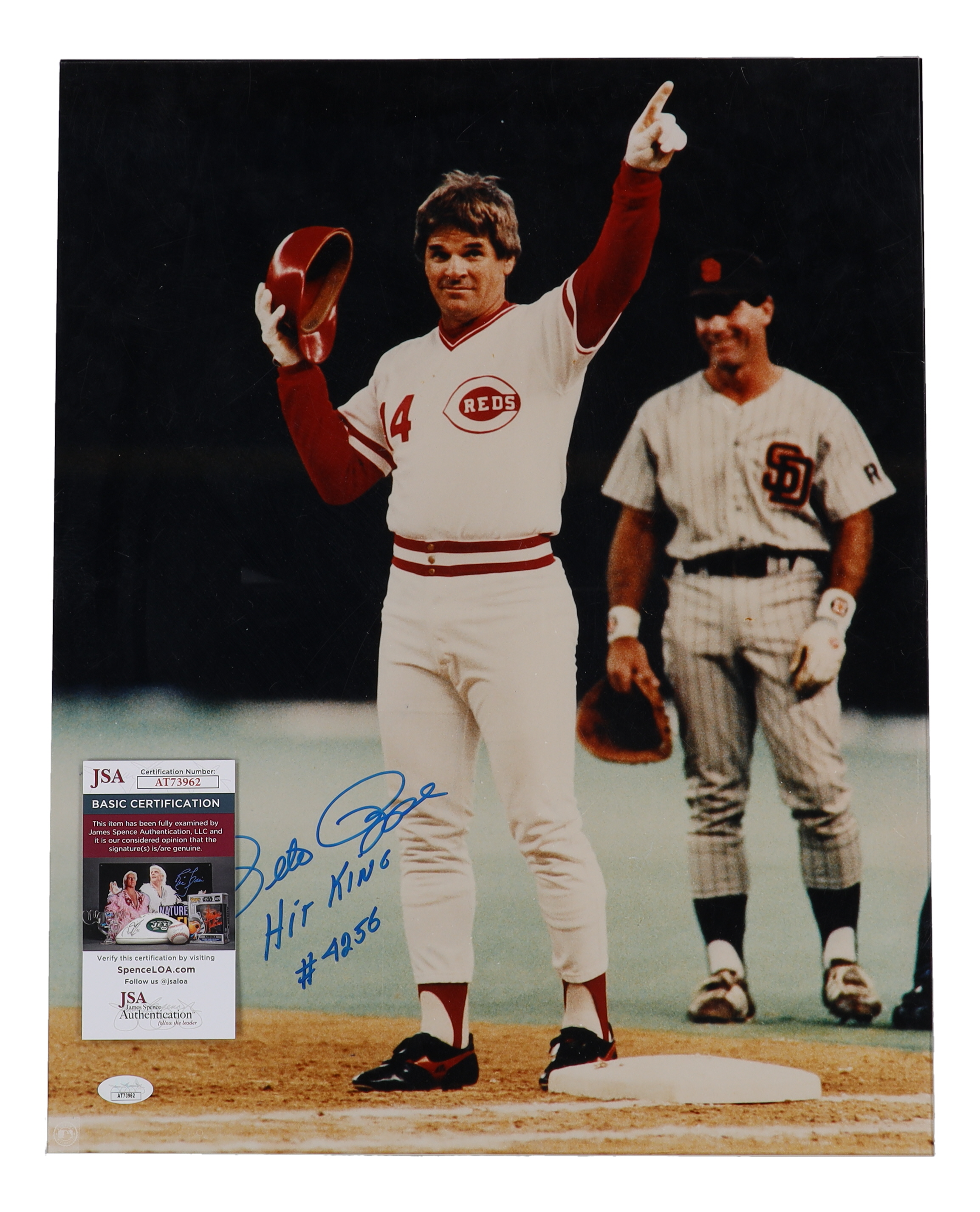 Pete Rose Signed Reds 16x20 Photo Inscribed "Hit King" & "#4256" (JSA)