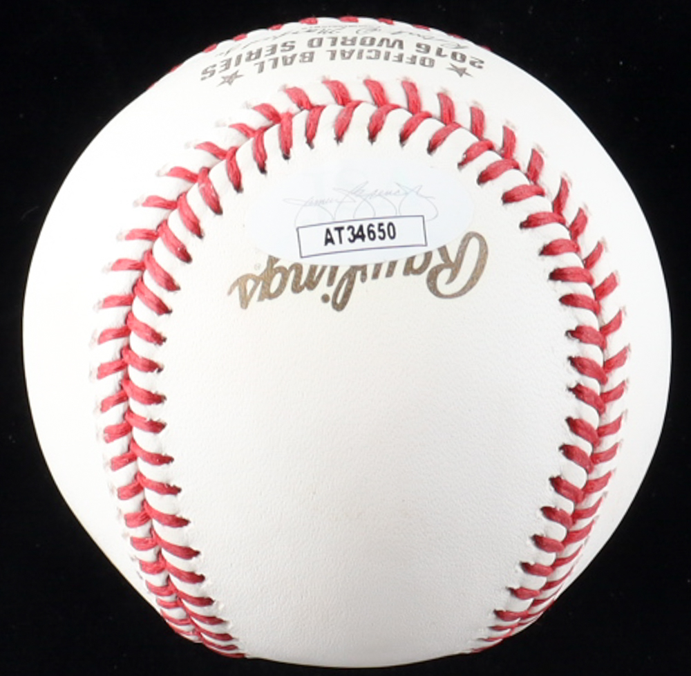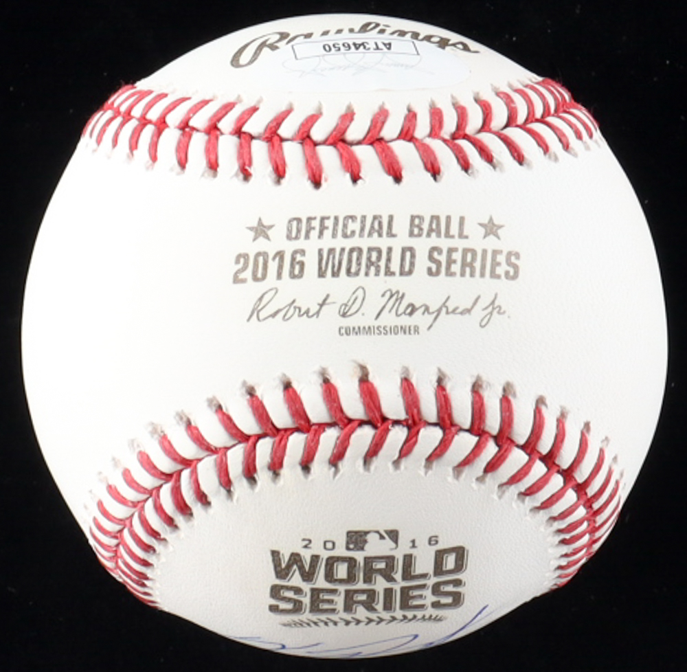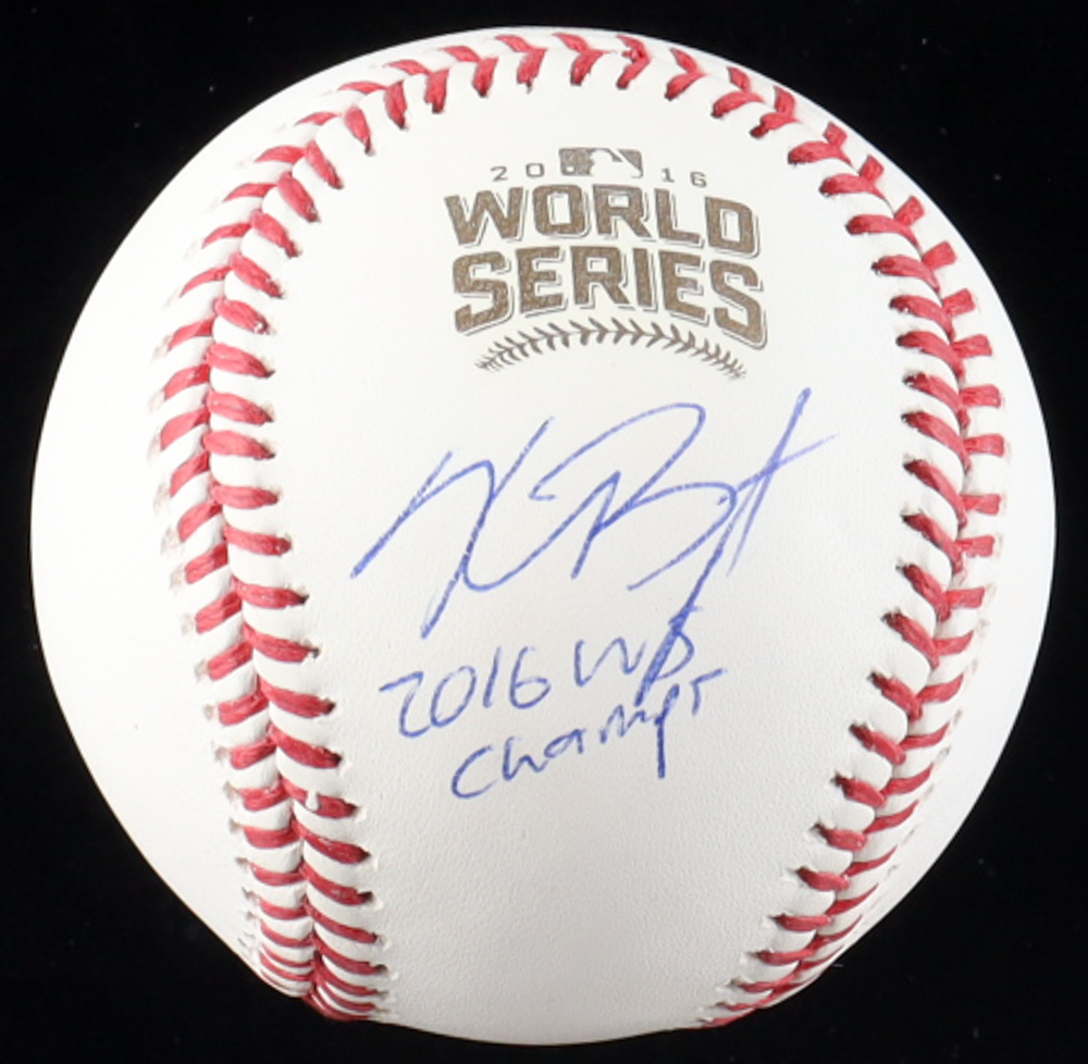 Rawlings Official 2016 World Series baseball. Hand-signed and inscribed by Kris Bryant (Colorado Rockies).