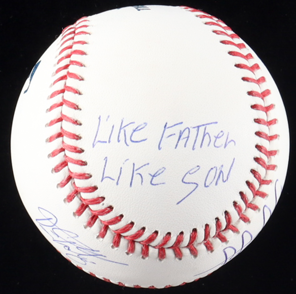 Rawlings Official Major League baseball. Hand-signed and inscribed by Fernando Tatis Sr. (New York Mets) & Fernando Tatis Jr. (San Diego Padres).