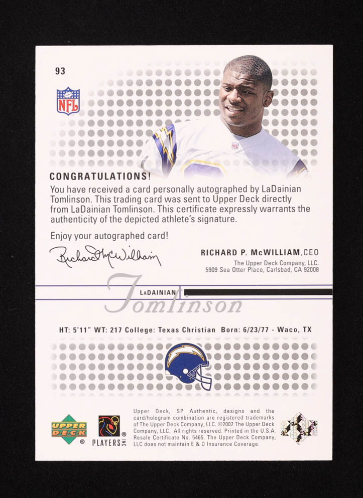 LaDainian Tomlinson 2002 SP Authentic #93 Autograph