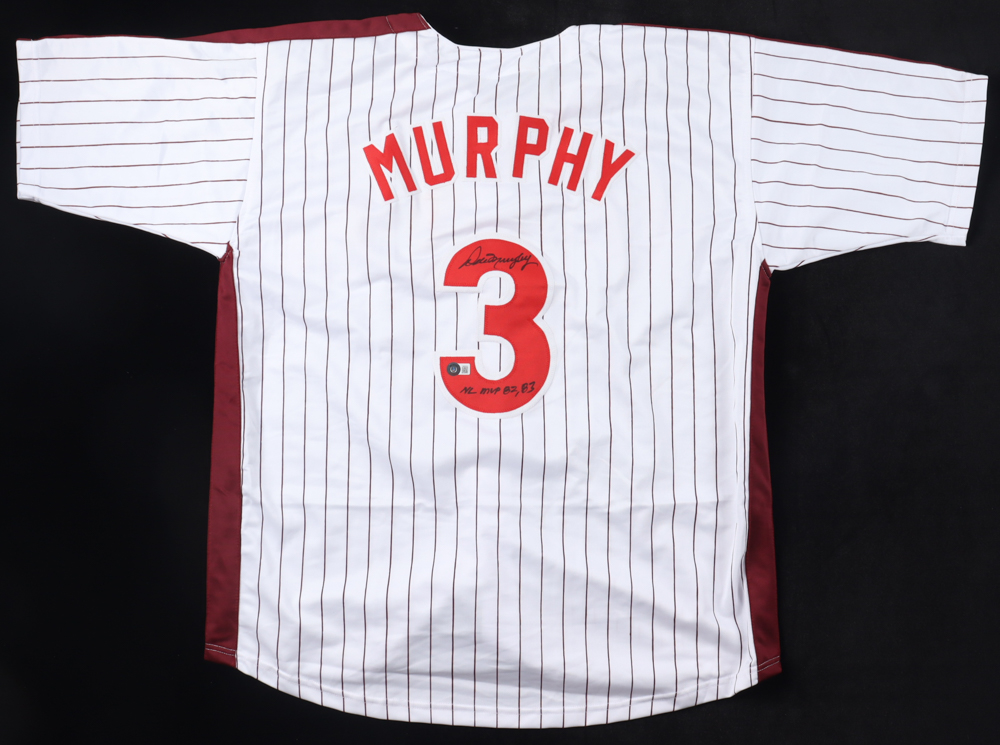 Custom jersey. Everything sewn on, size XL. Hand-signed and inscribed by Dale Murphy.