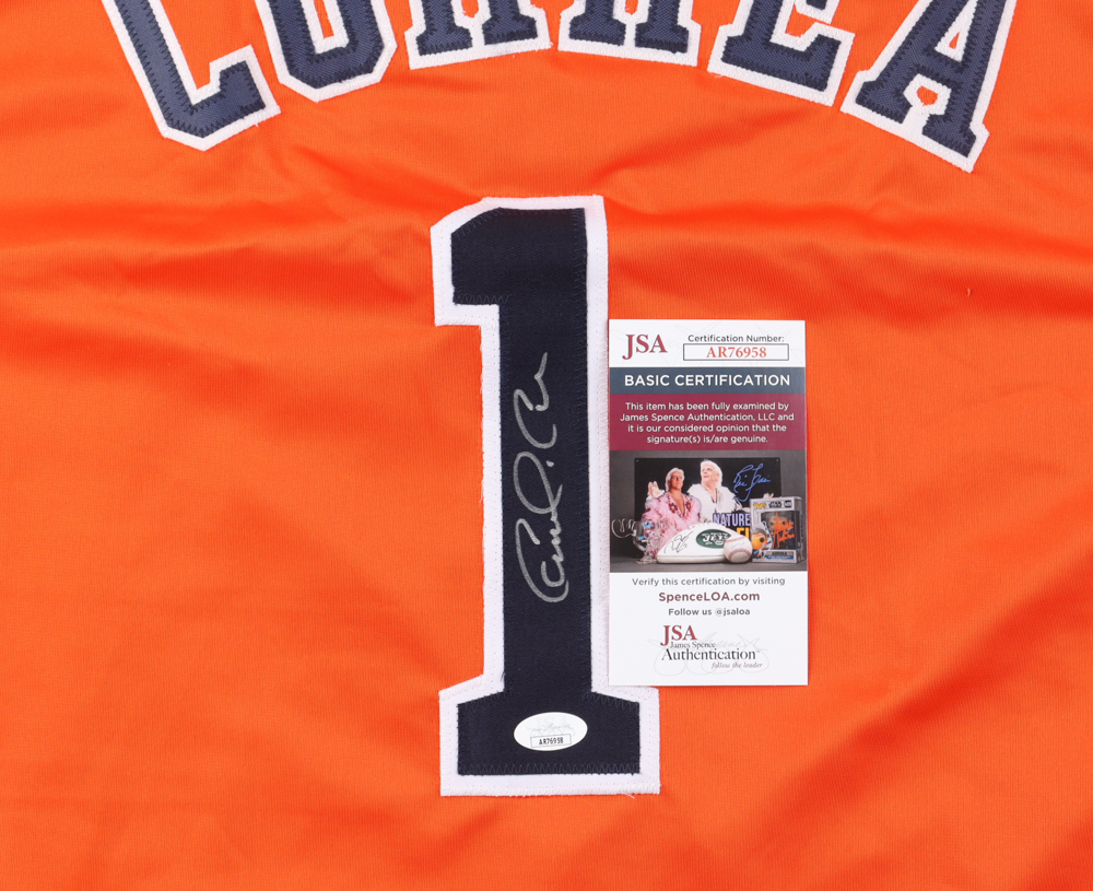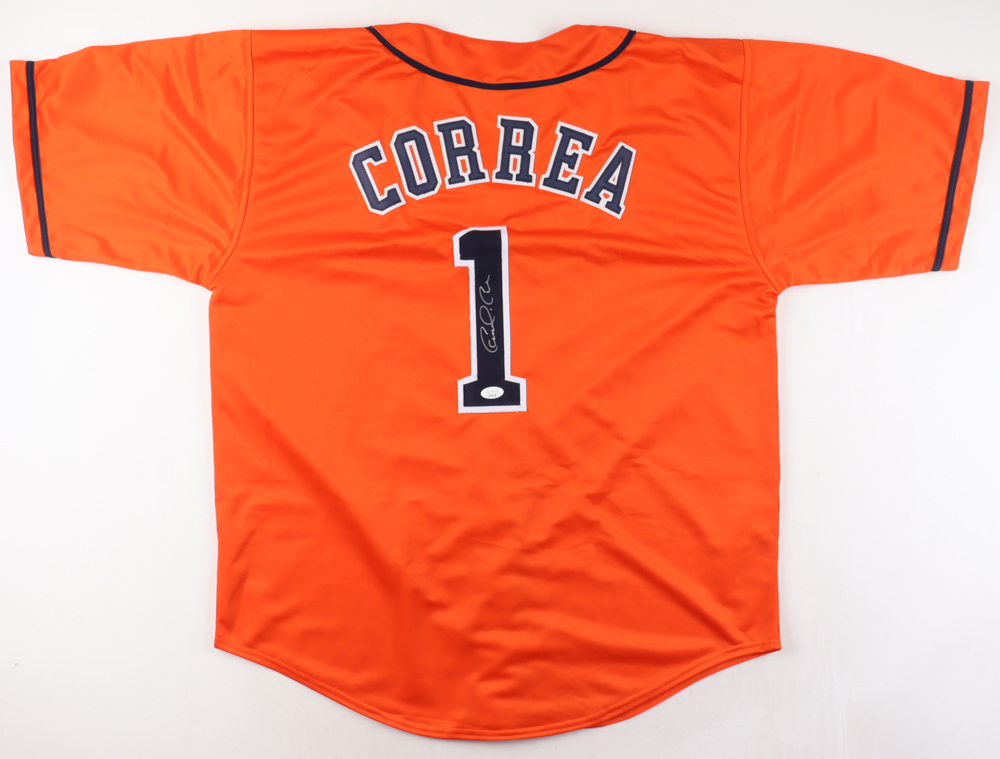 Custom jersey. Everything is sewn on, size XL. Hand-signed by Carlos Correa.