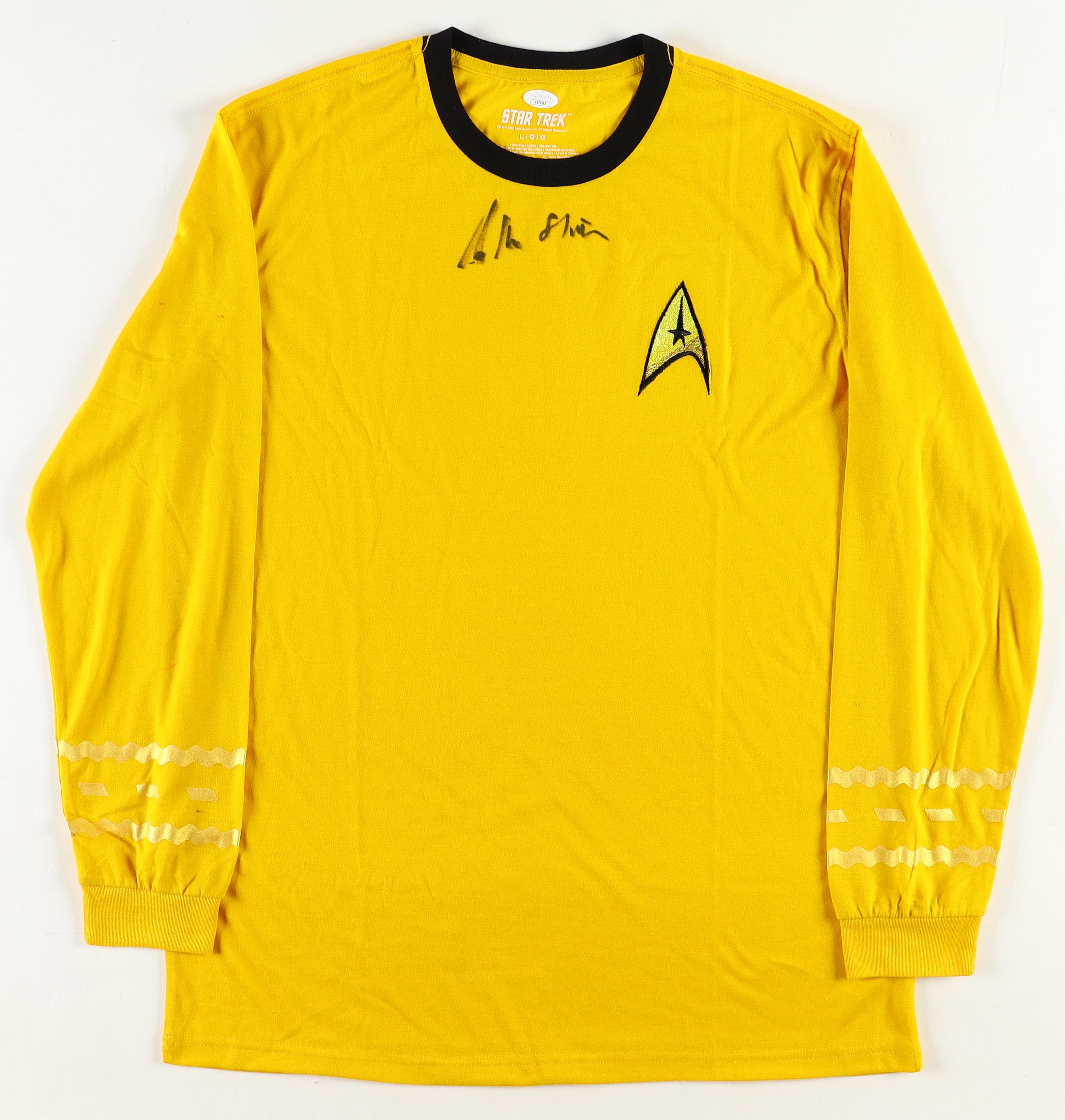 Custom Star Trek uniform. Everything sewn on, size XL. Jersey has been hand-signed by William Shatner (Captain James T. Kirk).