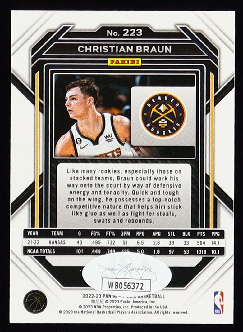 Christian Braun Signed 2022-23 Panini Prizm #223 RC (JSA)