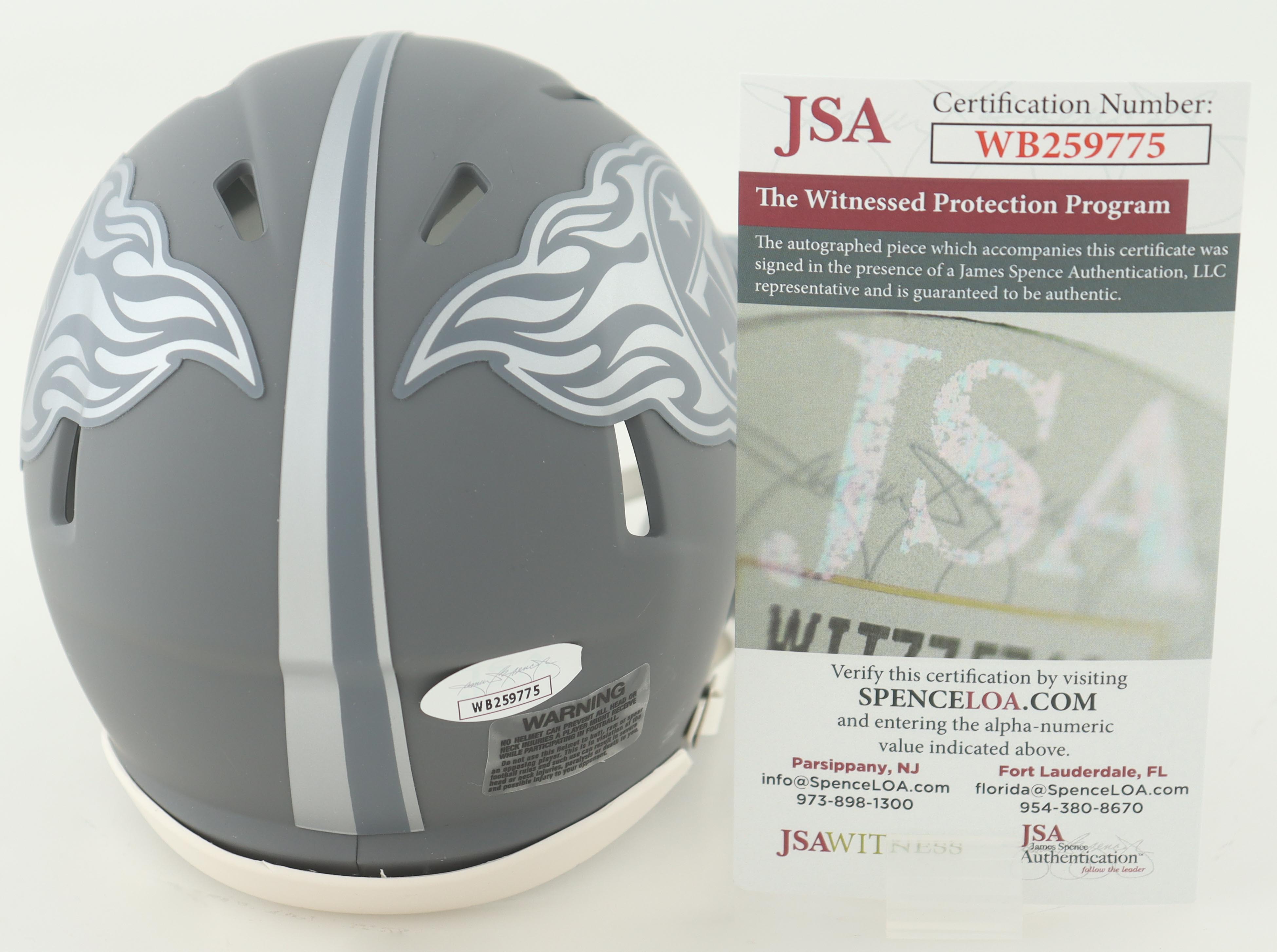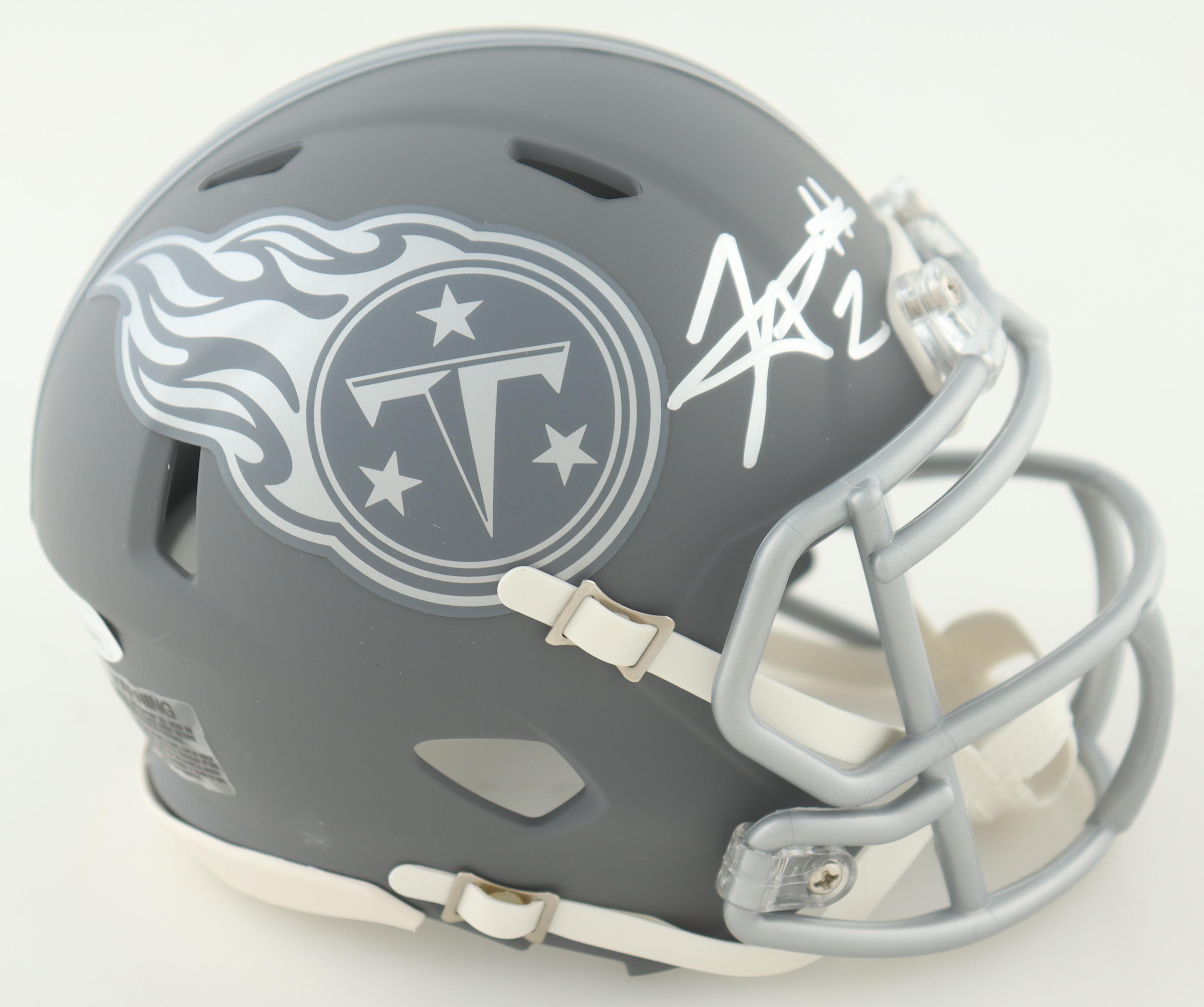 Riddell Tennessee Titans Slate Alternate Speed mini helmet. Hand-signed by Tyjae Spears.
