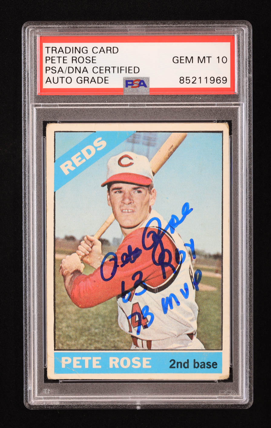 Pete Rose Signed 1966 Topps #30 DP Inscribed "63 ROY" & "73 MVP" (PSA | Autograph Graded PSA 10)