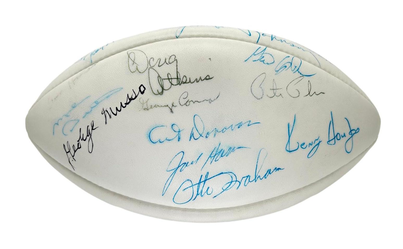 Wilson NFL Football. Hand-signed by Dante Lavelli, ray Nitschke, Jim Otto, Charley Trippi, Alex Wojciechowicz, Weeb Ewbank, Bill Dudley, Fred Biletnikoff, John Henry Johnson, Larry Wilson, Lou Groza, Pete Pihos, Willie Lanier, Don Hutson, George Musso, Doug Atkins, George Connors, Art Donovan, Jack Ham, Otto Graham, Gene Upshaw, Pete Pihos, Kenny Houston. See photos for more details.