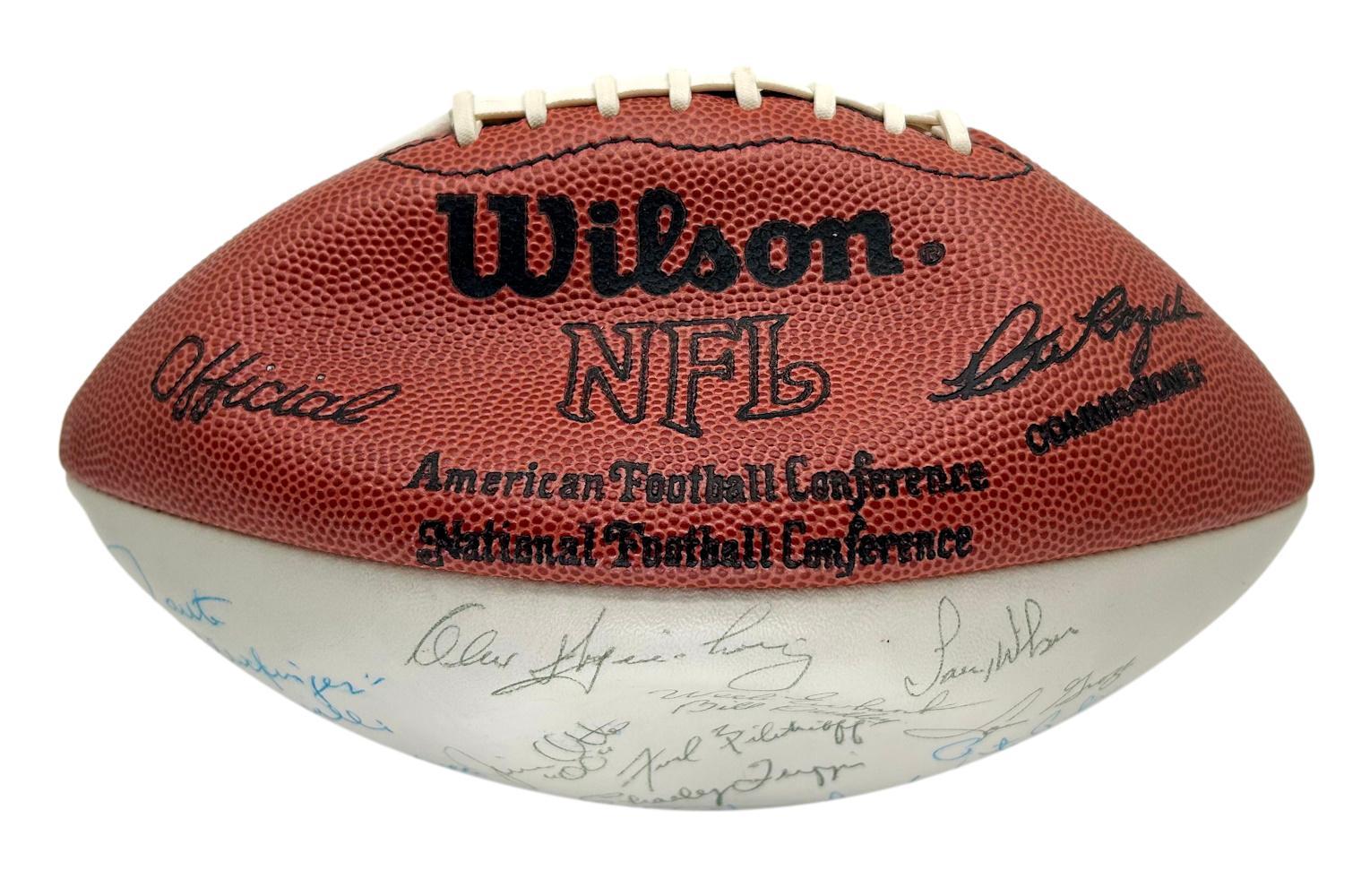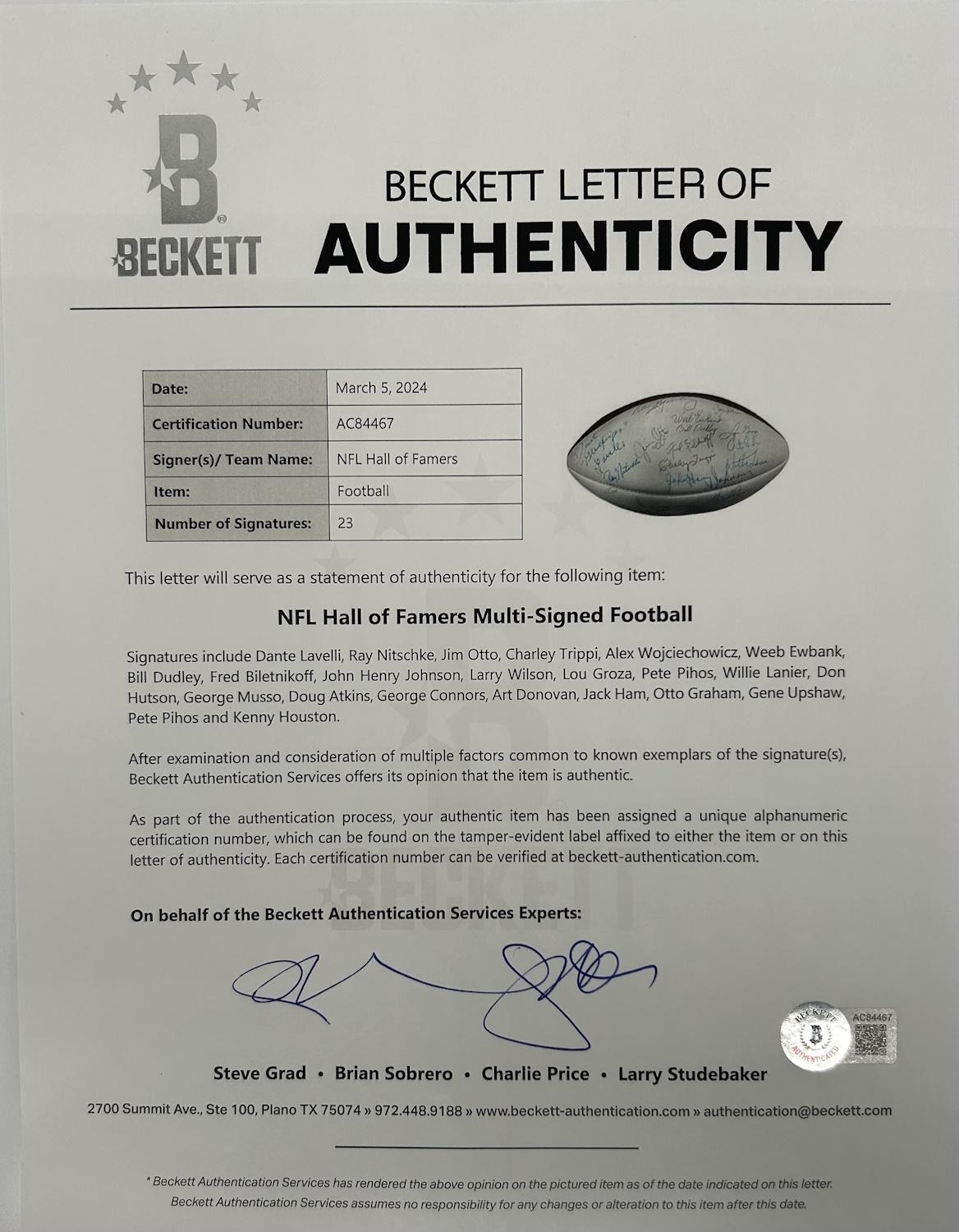 Wilson NFL Hall of Fame Football Signed By (23) with Otto Graham, Ray Nitschke, Fred Biletnikoff, Kenny Houston, Gene Upshaw, Weeb Ewbank (Beckett)