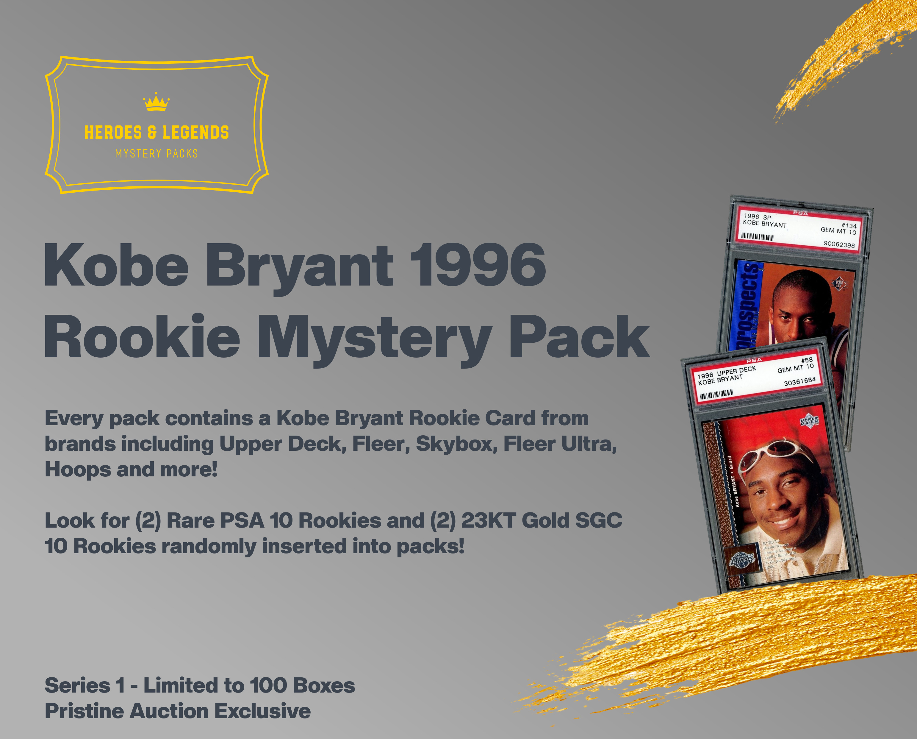 Heroes & Legends presents a Kobe Bryant 1996 Rookie Mystery Pack! Every pack contains (1) rookie card of Kobe Bryant!
