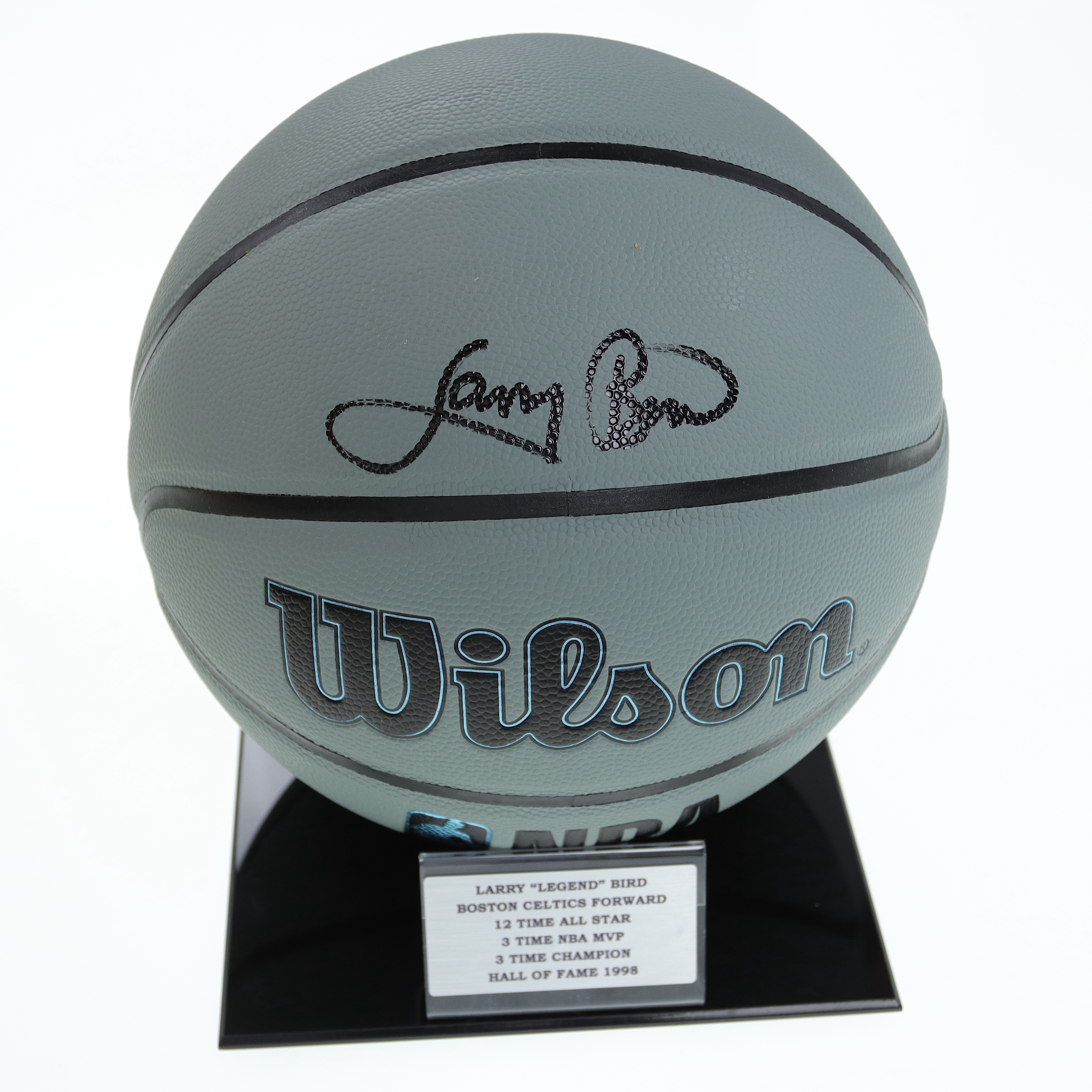 Wilson NBA Forge basketball. Hand-signed by Larry Bird (Boston Celtics, HOF). The display stand is included as shown.