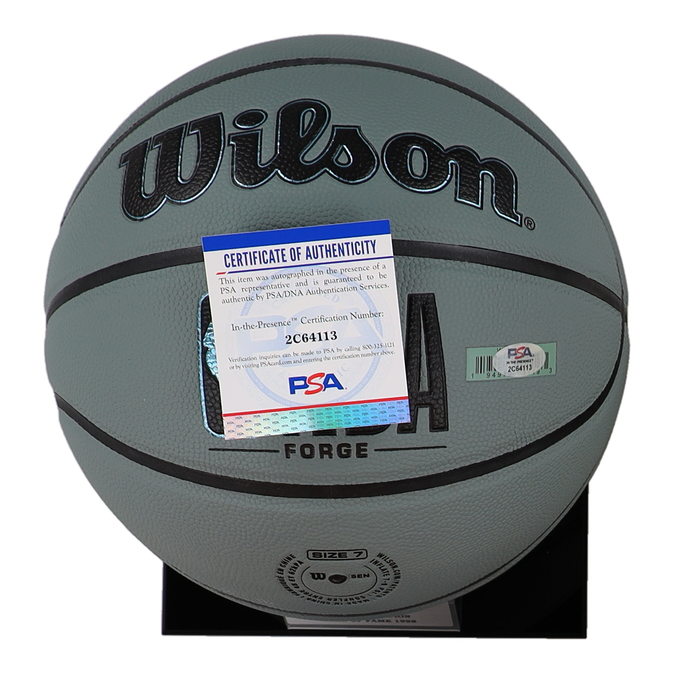 Larry Bird Signed NBA Basketball with Name Plaque (PSA)