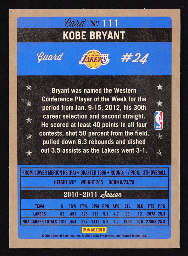 Kobe Bryant 2011-12 Panini Past and Present #111