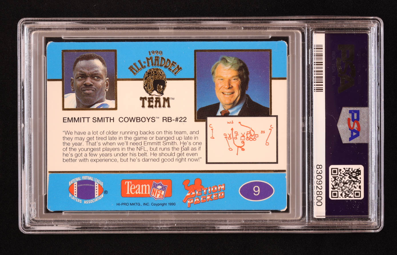 Emmitt Smith 1990 Action Packed All-Madden #9 RC (PSA 8)