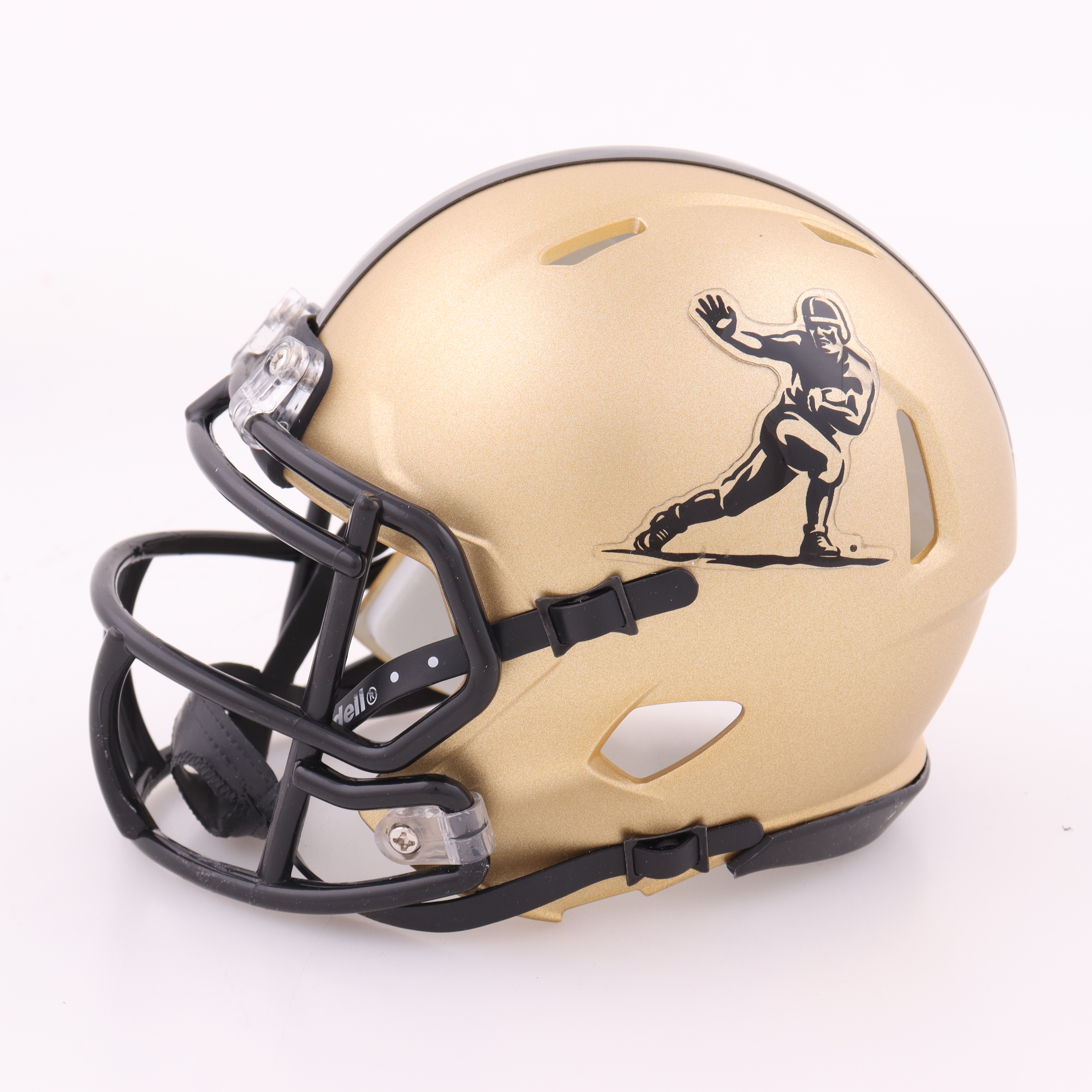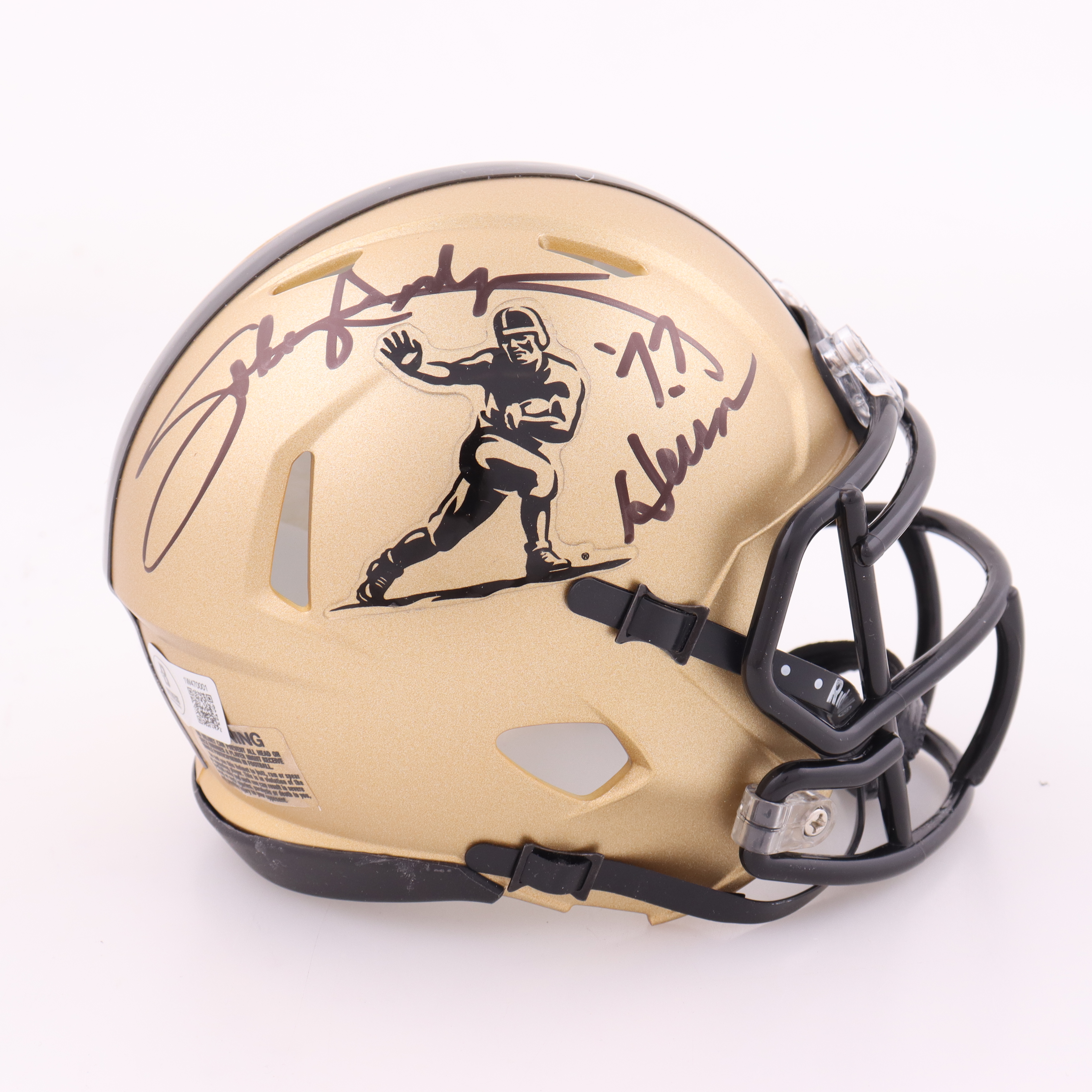 Riddell Heisman Trophy logo Speed mini helmet. Hand-signed by Johnny Rodgers (Nebraska Cornhuskers).