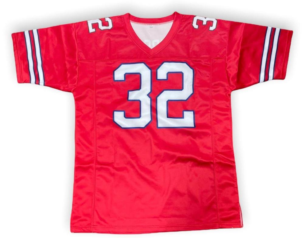 Custom jersey, size L. Hand-signed and inscribed by O.J. Simpson (D. 2024, Buffalo Bills).