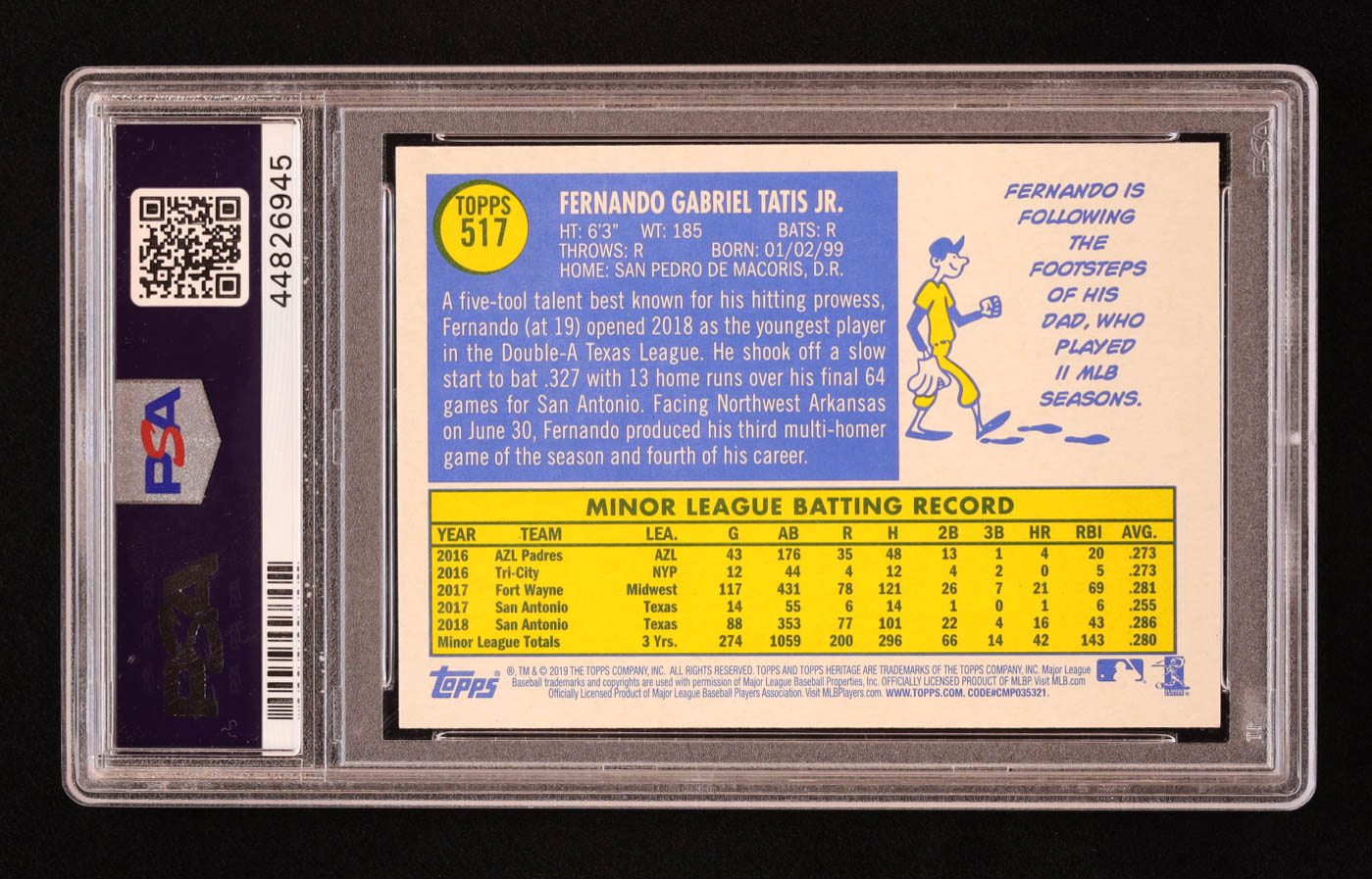 Fernando Tatis Jr. 2019 Topps Heritage #517 RC (PSA 10)
