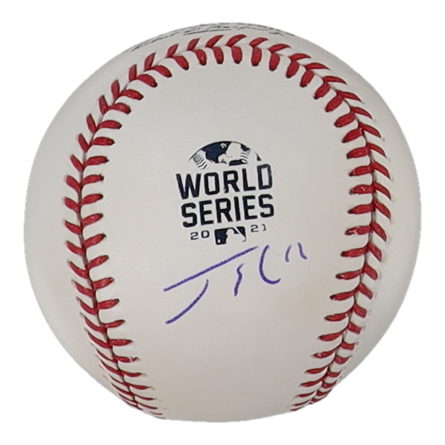 Rawlings Official 2021 World Series logo baseball. Hand-signed by Jorge Soler (Atlanta Braves).