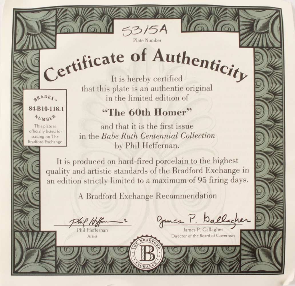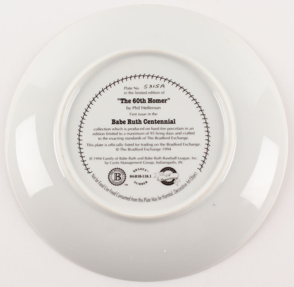 Babe Ruth LE "60th Homer" Bradford Exchange Porcelain Plate