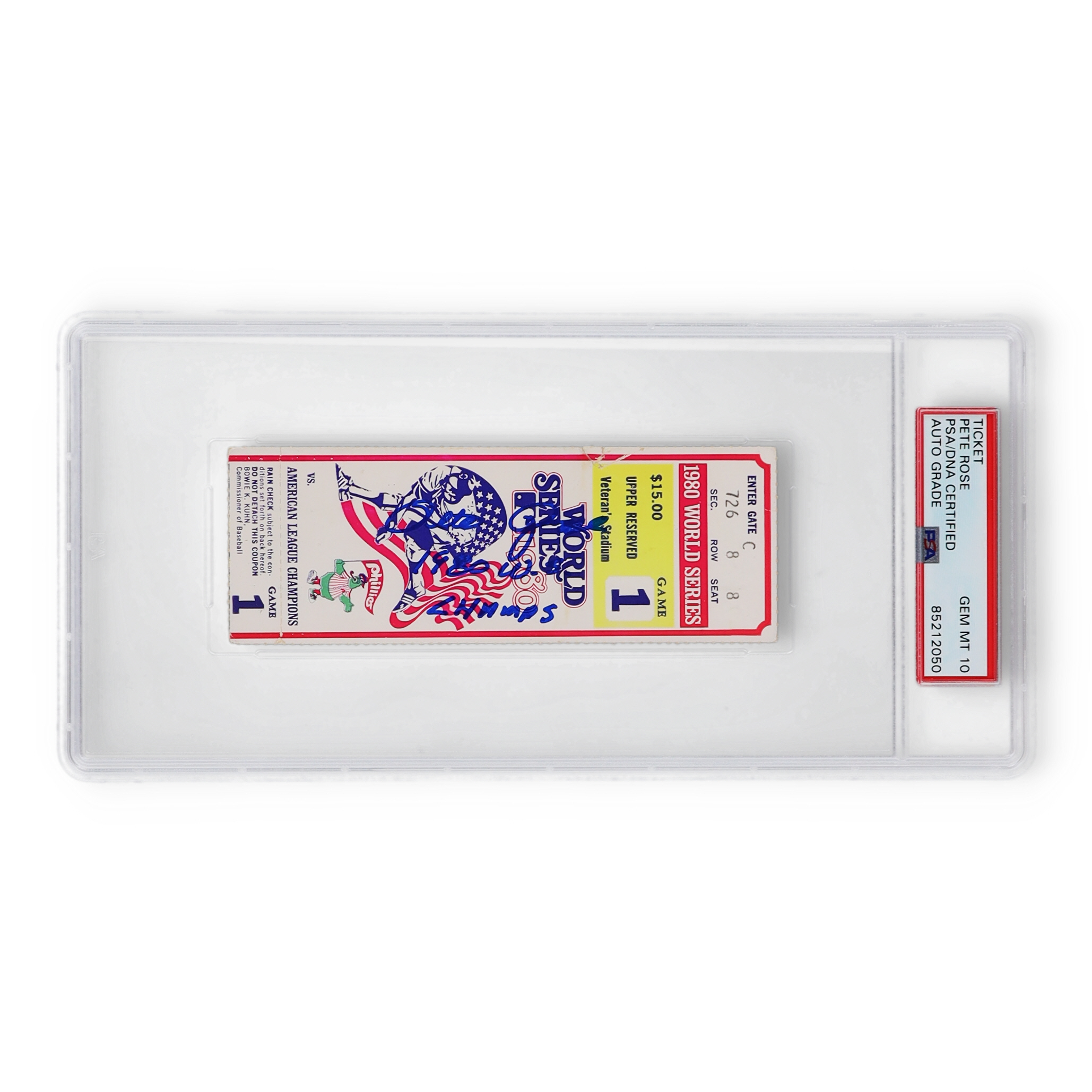 Pete Rose Signed 1980 World Series Ticket Stub Inscribed "1980 W.S. Champ" (PSA | Auto 10)