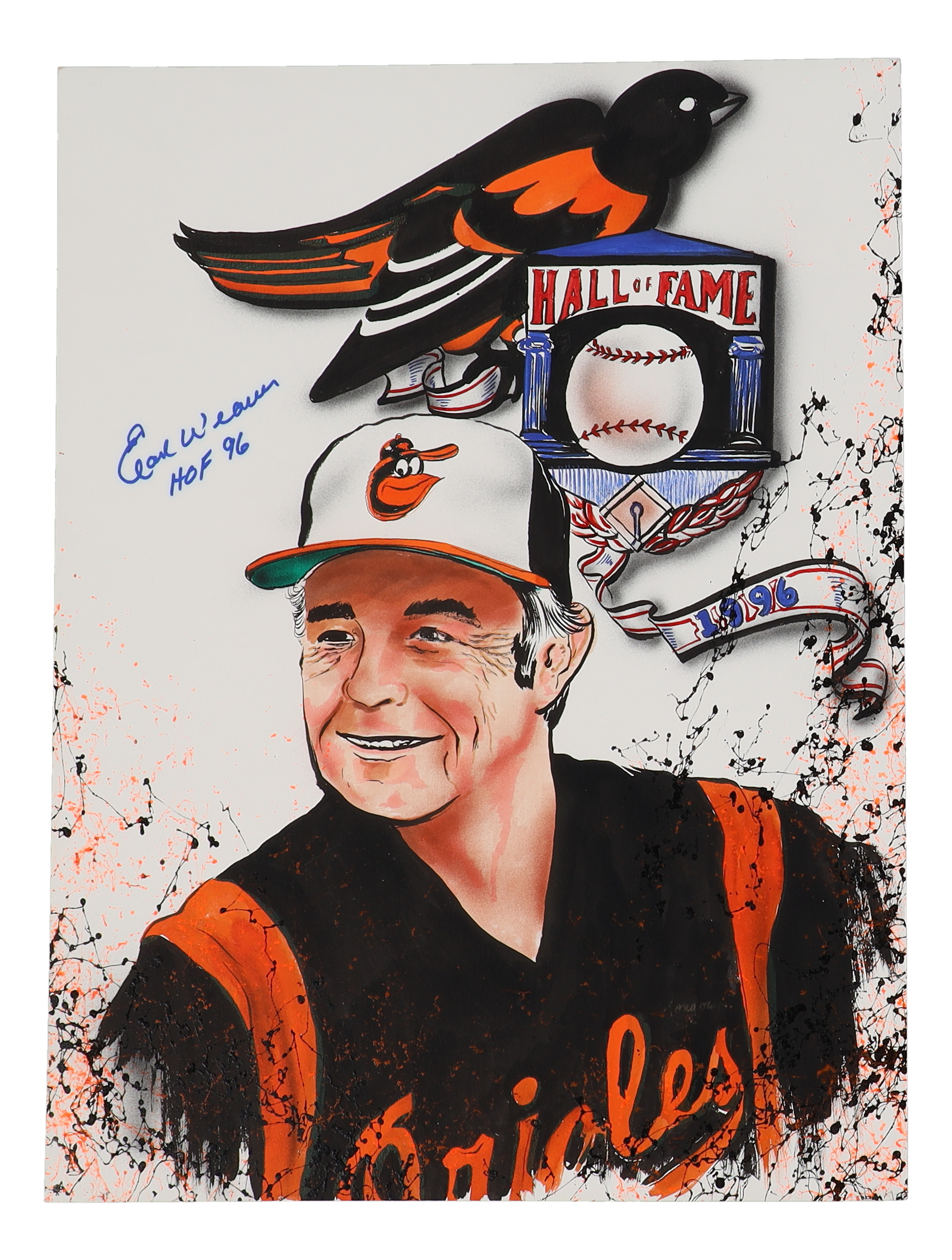Earl Weaver & Gary Longordo Signed Orioles Original Artwork Inscribed "HOF 96" (JSA & PA)