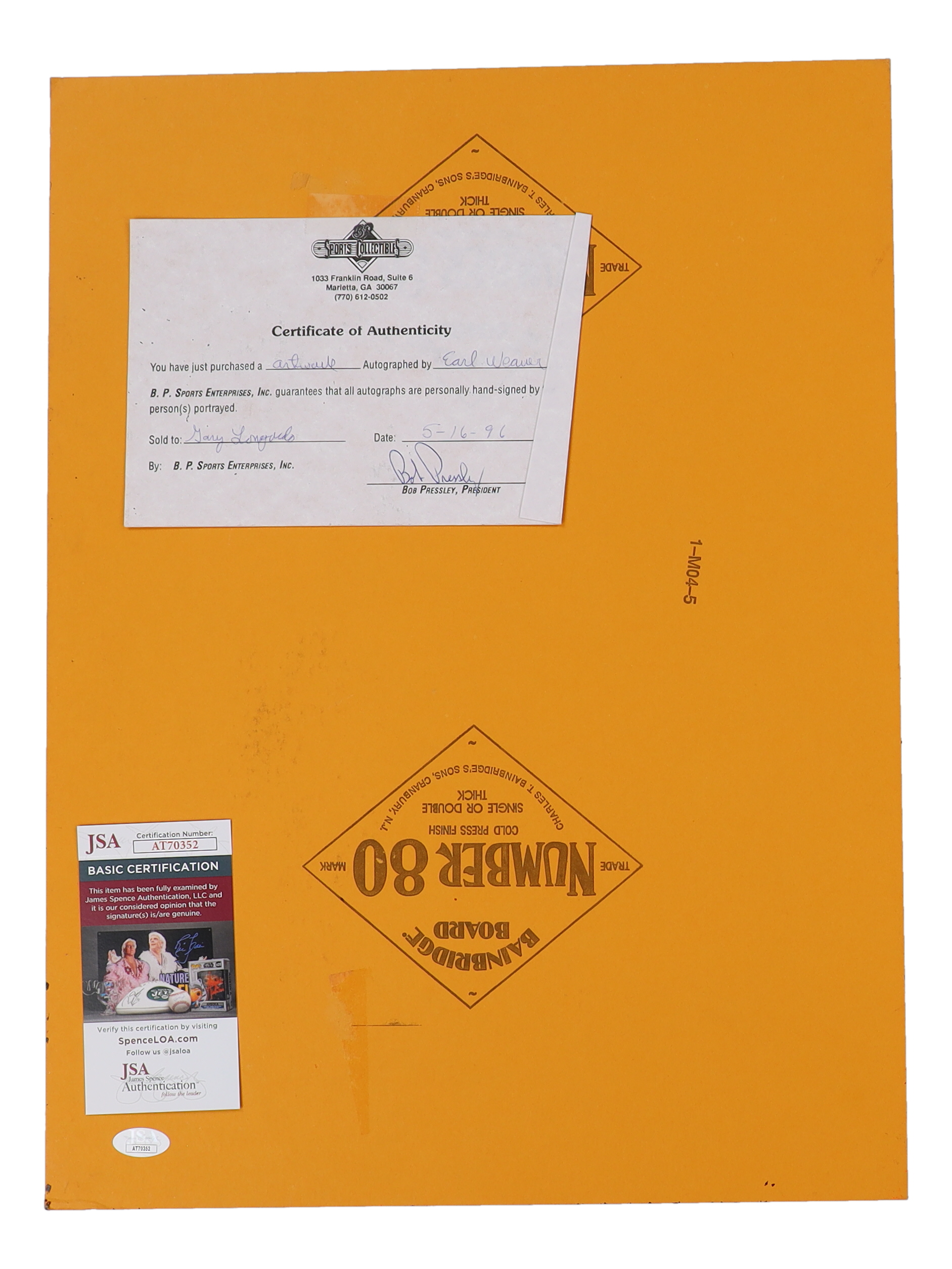 Authentication: JSA COA & Pristine Auction LOA