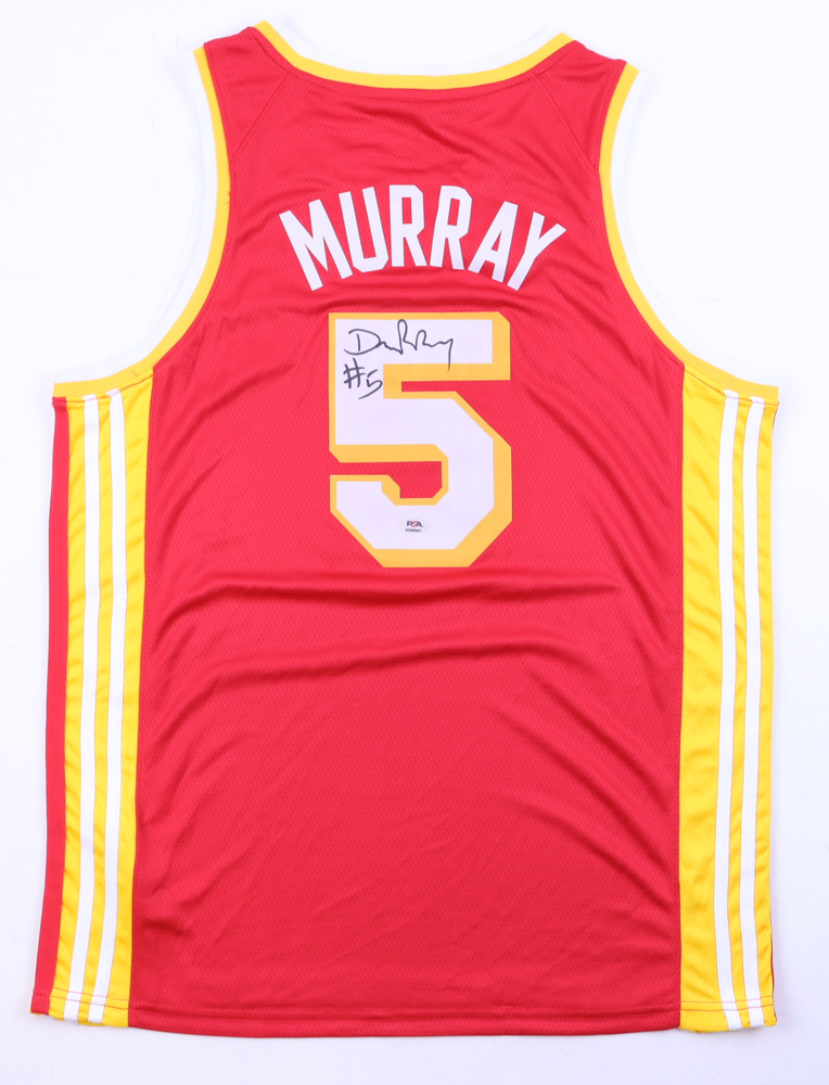 Custom jersey with everything pressed on, size XL. Jersey has been hand-signed by Dejounte Murray.