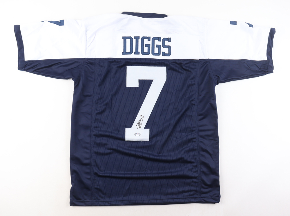 Custom jersey. Everything is sewn on, size XL. Hand-signed by Trevon Diggs. Please note, glue is visible through the front and reverse numbers.