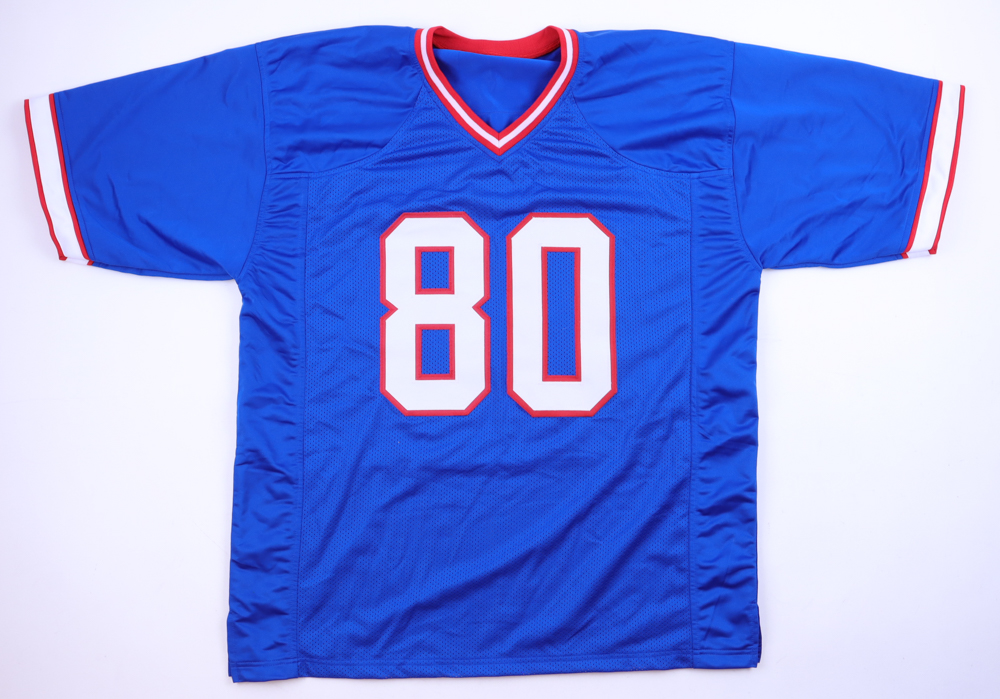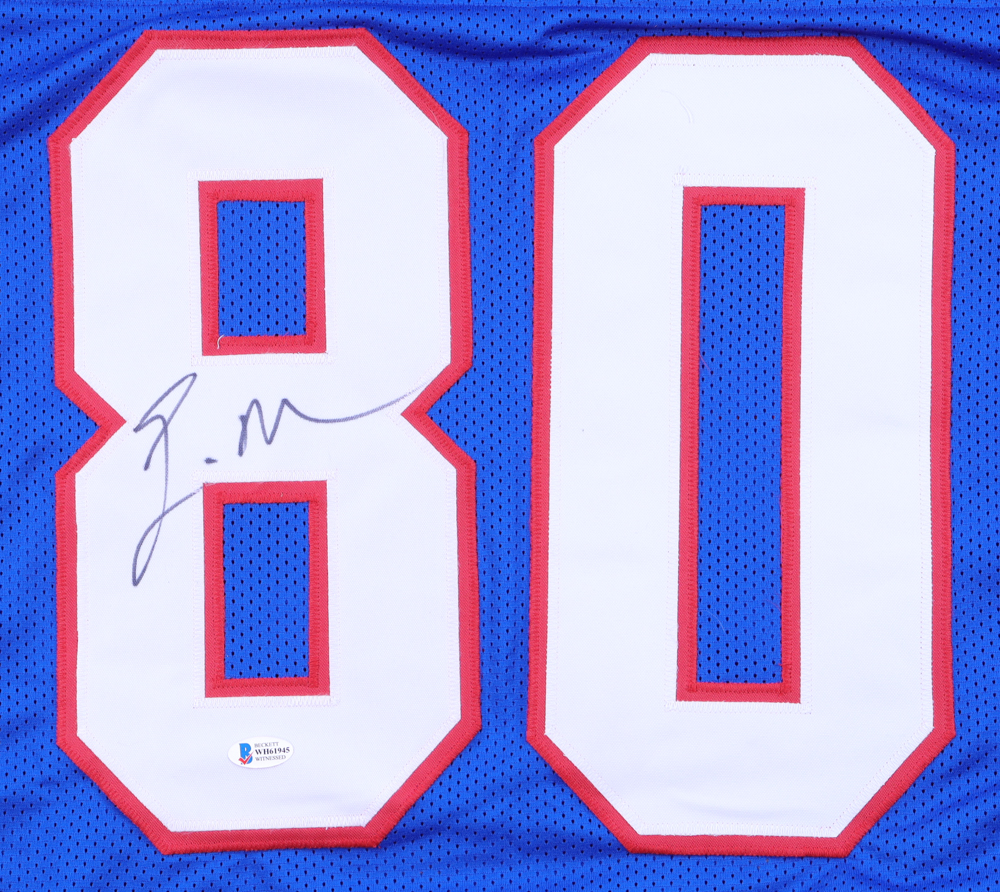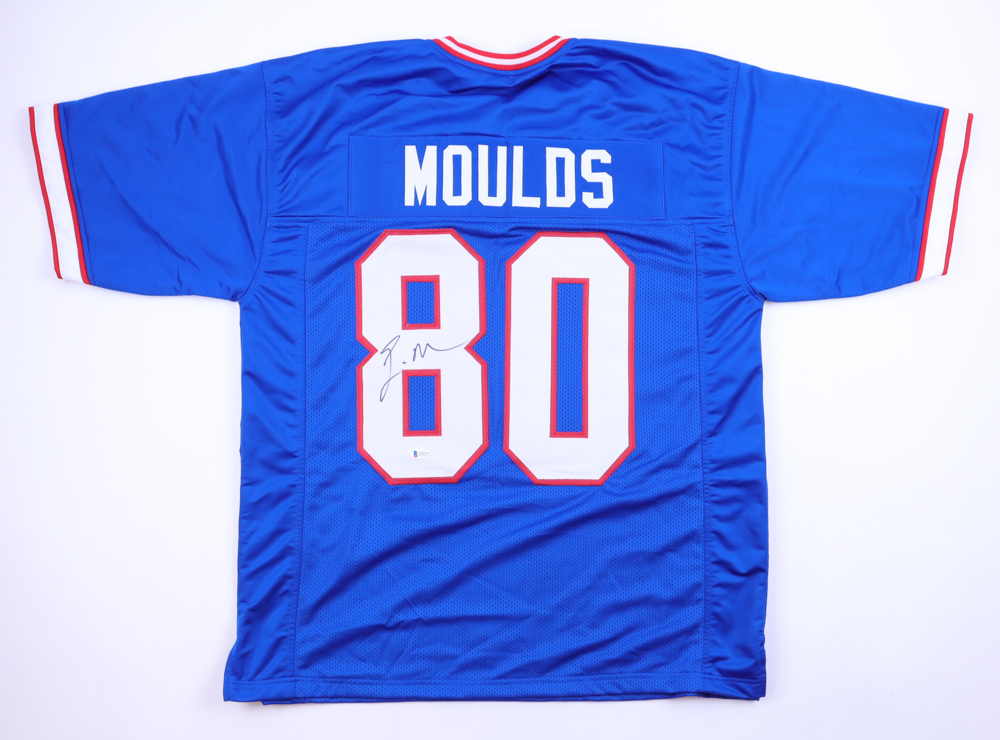 Custom jersey. Everything is sewn on, size XL. Hand-signed by Eric Moulds.