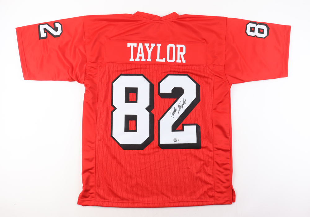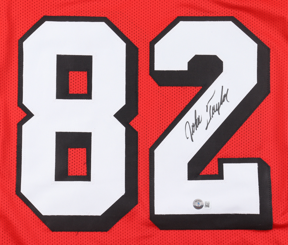 Custom jersey with everything sewn on, size XL. Hand-signed by John Taylor.