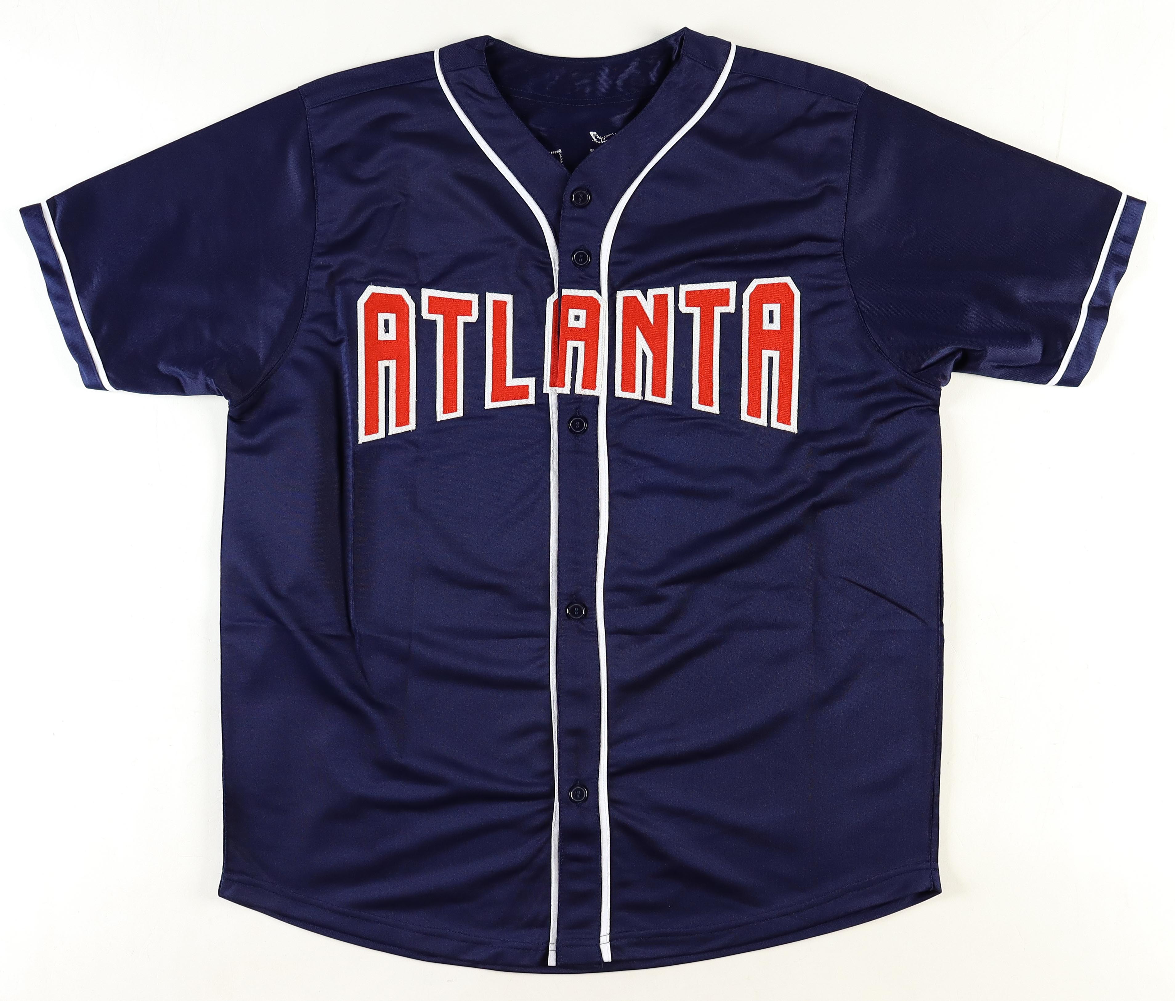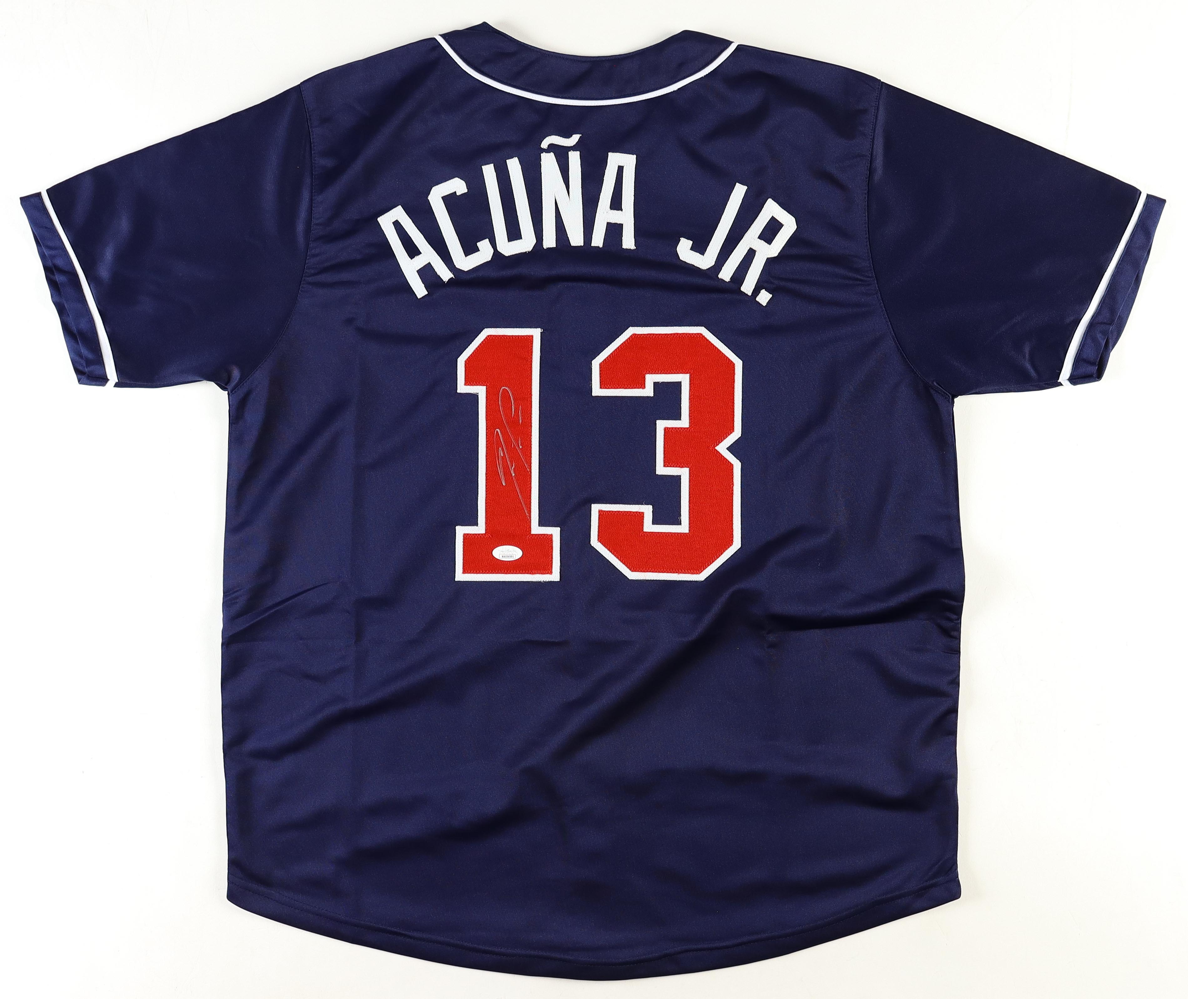 Custom jersey with everything sewn on, size XL. Hand-signed by Ronald Acuna Jr.