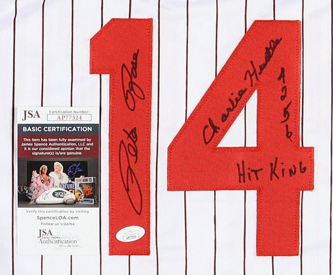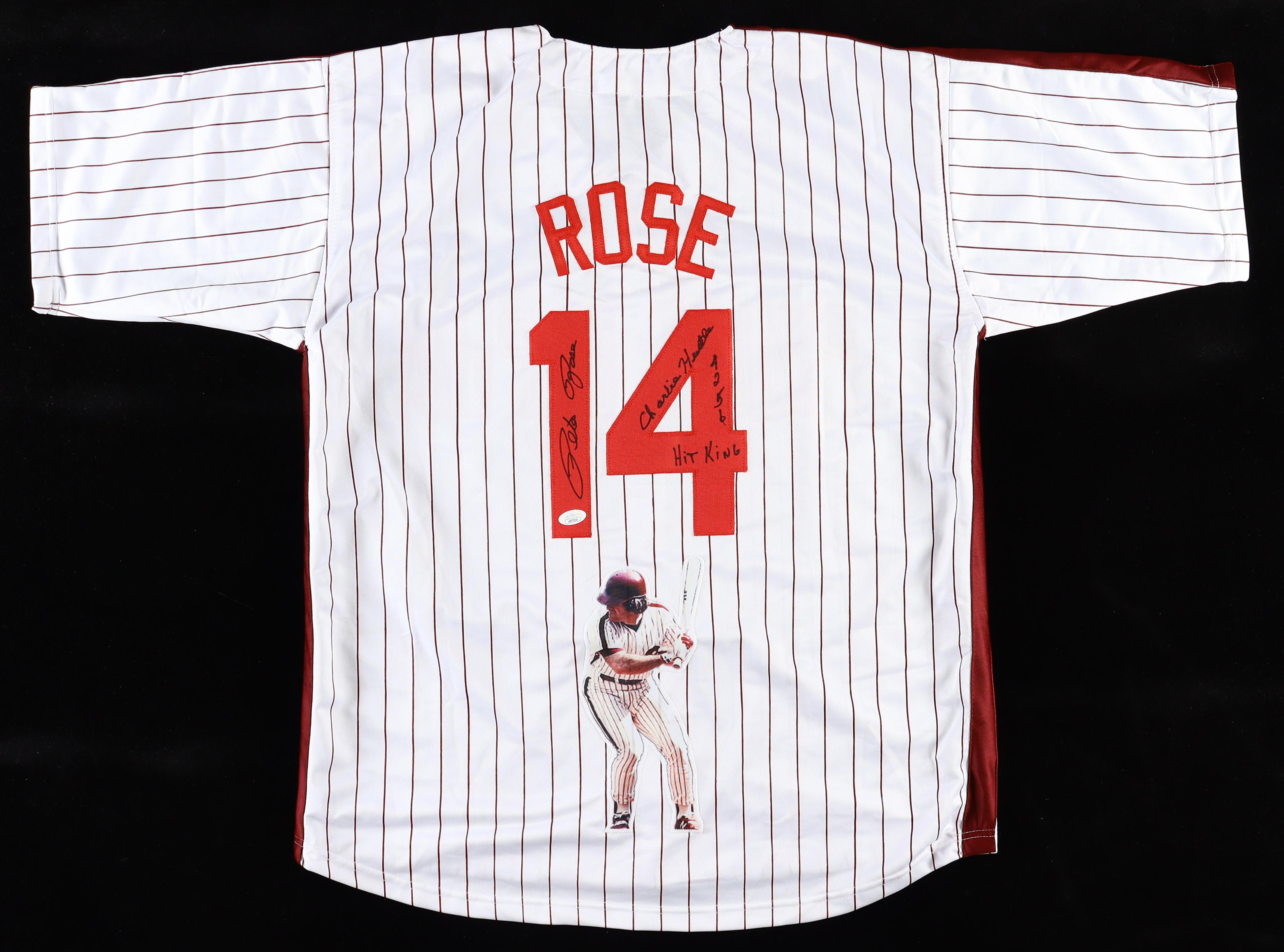 Pete Rose Signed Jersey Inscribed "Charlie Hustle", "4256" & "Hit King" (JSA)
