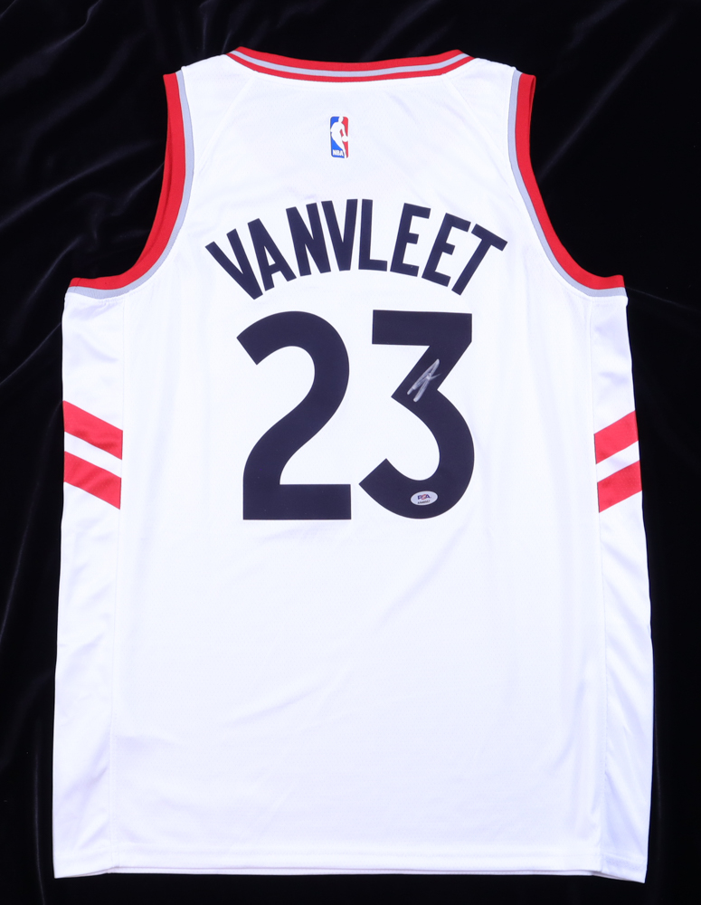 Nike jersey. Everything is pressed on, size 48. Hand-signed by Fred Vanvleet.