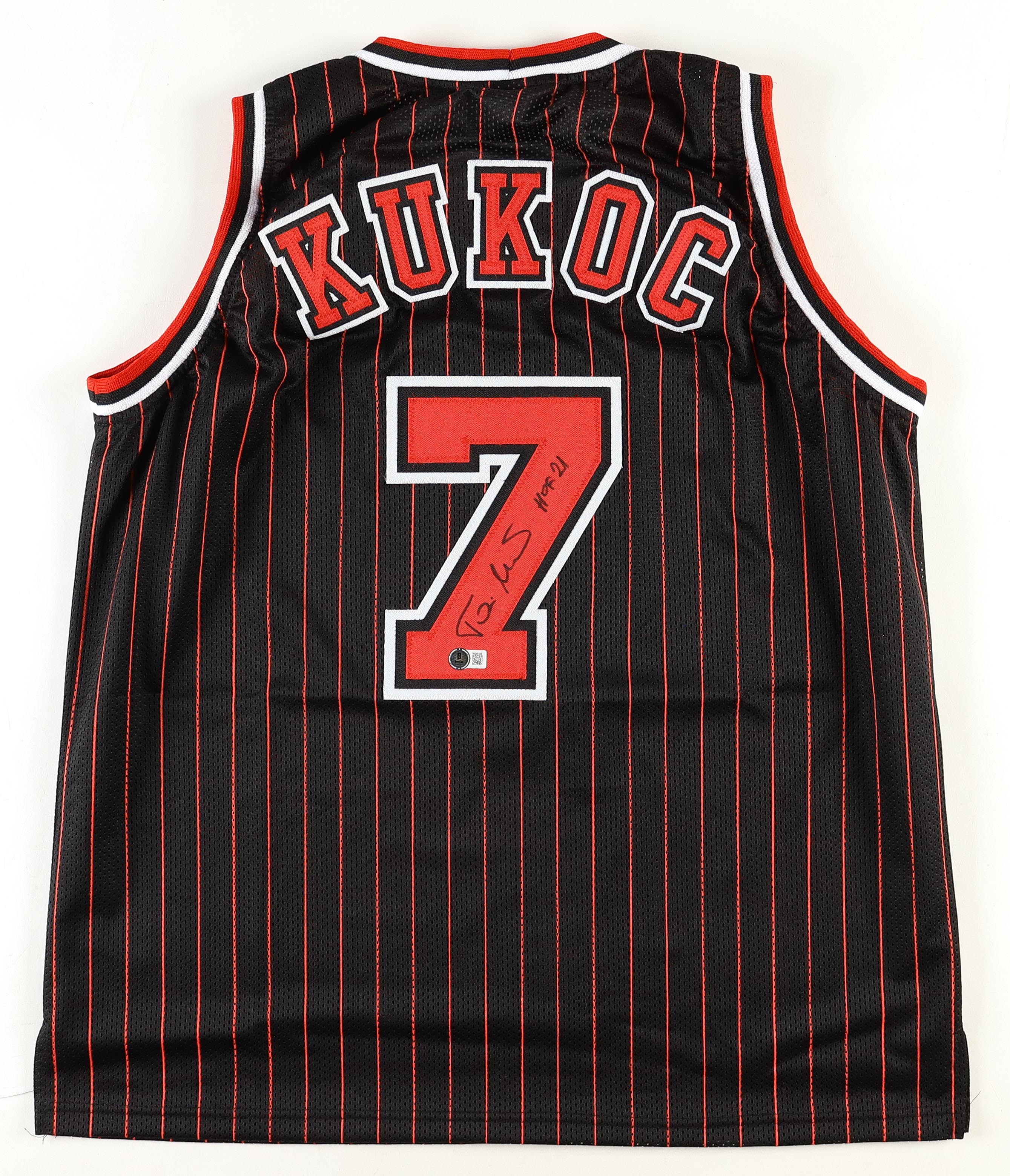 Toni Kukoc Signed Jersey Inscribed "HOF 21" (Beckett)