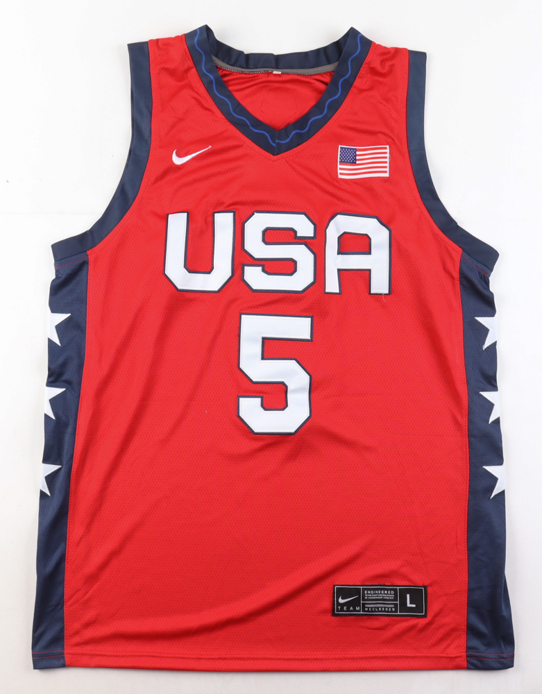 Nike jersey with everything sewn on, size L. Has been hand-signed by Kelsey Plum.
