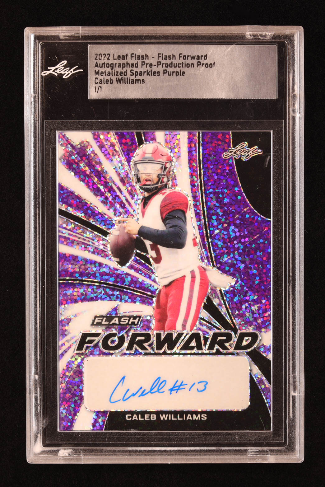 Caleb Williams 2022 Leaf Flash Flash Forward Autographs Metalized Sparkles Purple Pre-Production Proof #NNO #1/1 RC (Leaf)