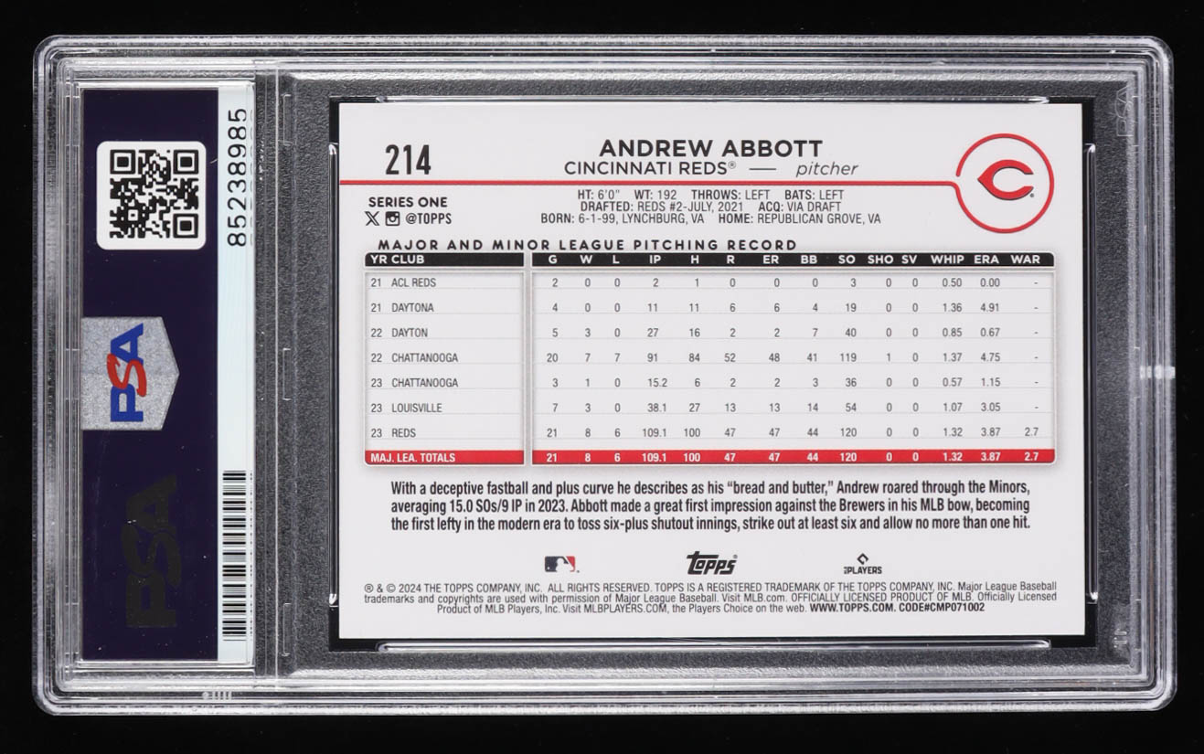 Andrew Abbott Signed 2024 Topps #214 RC (PSA)