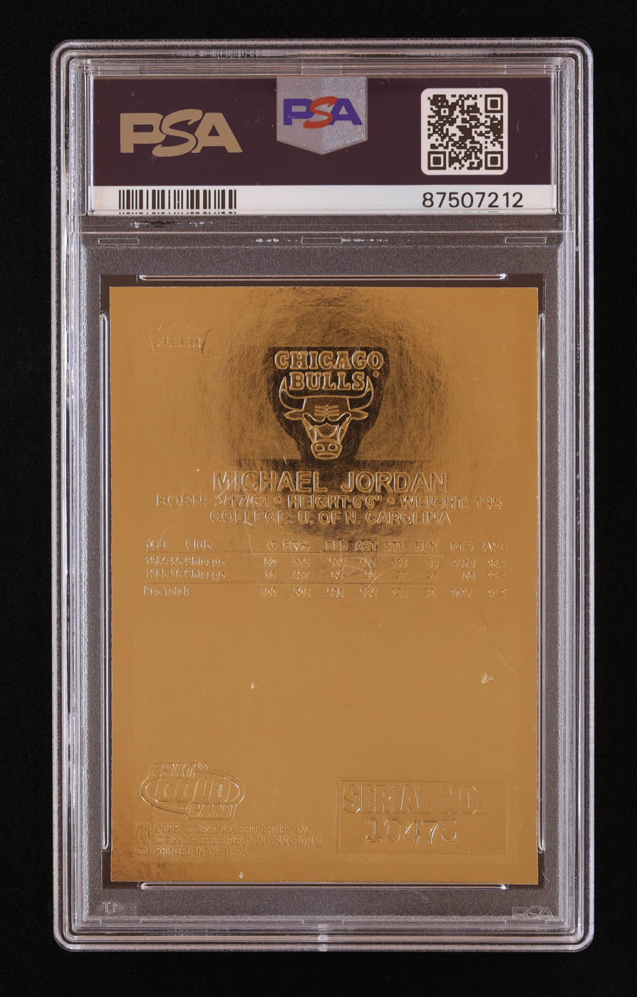 Michael Jordan 1997 Fleer Premier Signature Series Red Holo Refractor 23Kt Gold Card #10473 (PSA 8)