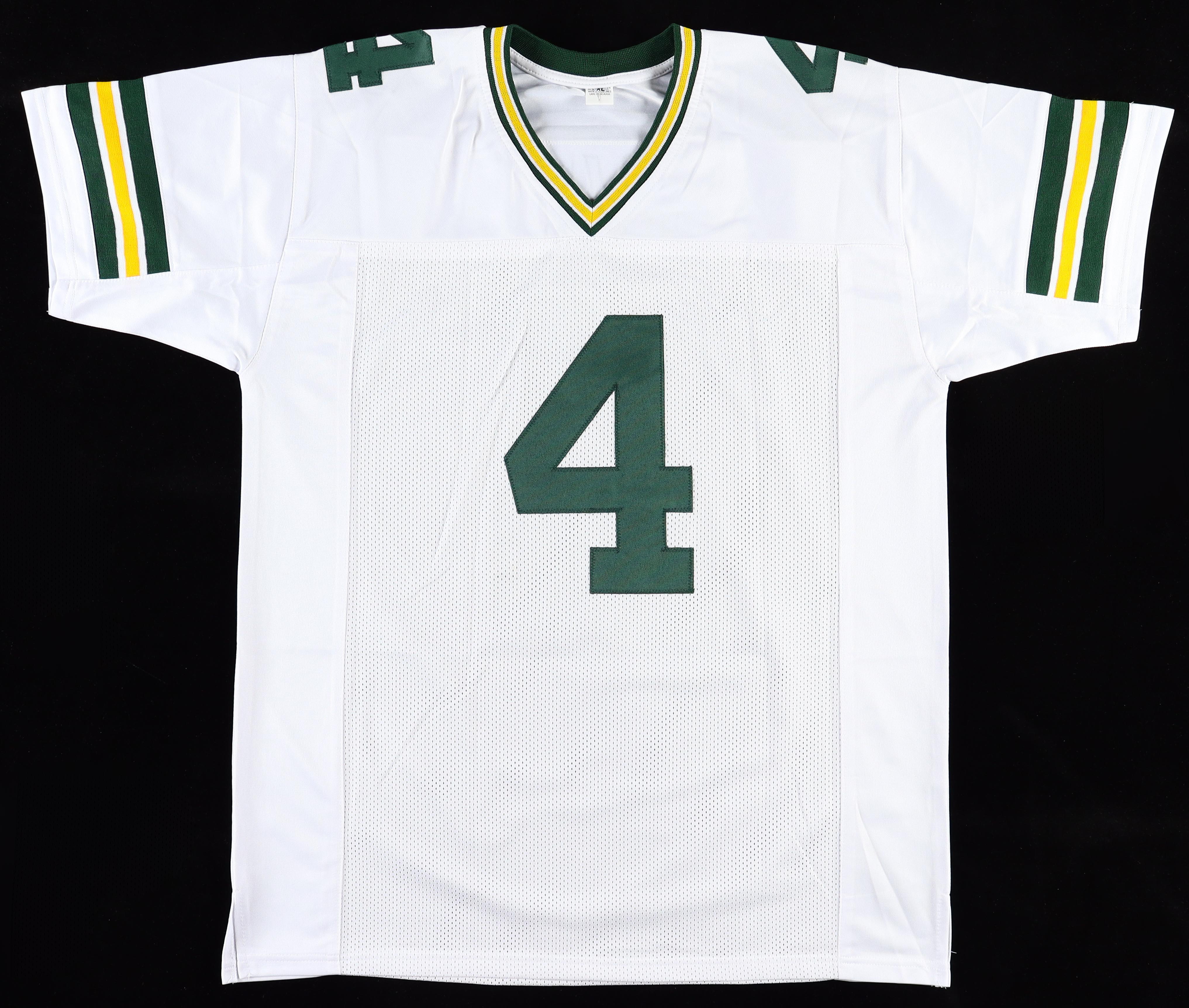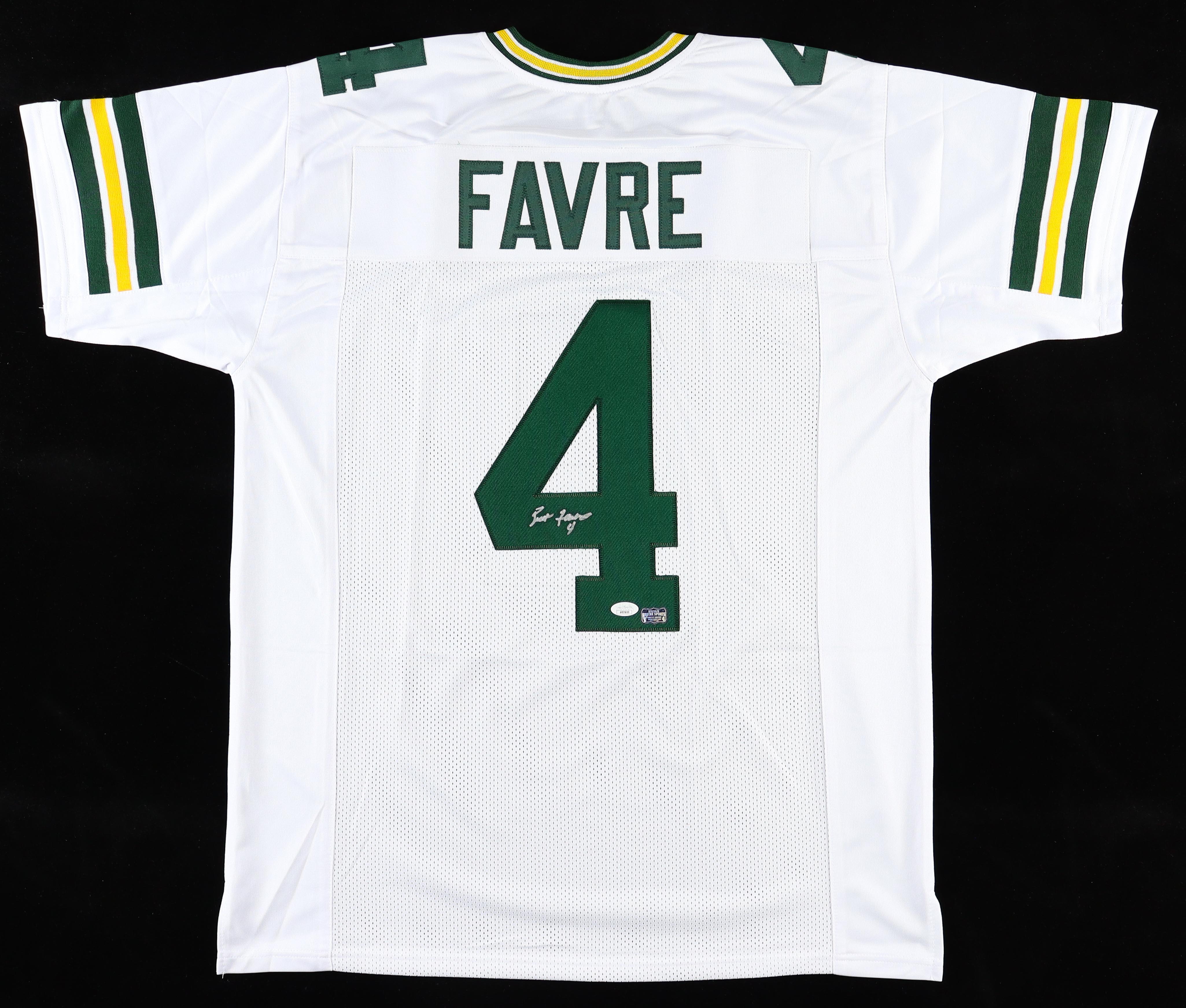 Custom jersey with everything sewn on, size XL. Hand-signed by Brett Favre (HOF).