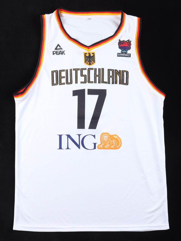 Custom jersey with everything pressed on, size L. Hand-signed by Dennis Schroder.