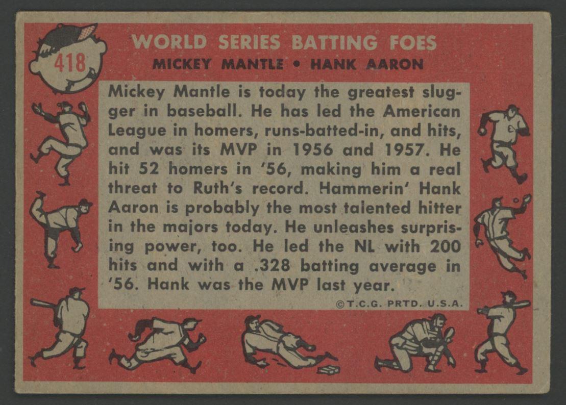Mickey Mantle / Hank Aaron 1958 Topps #418 World Series Batting Foes