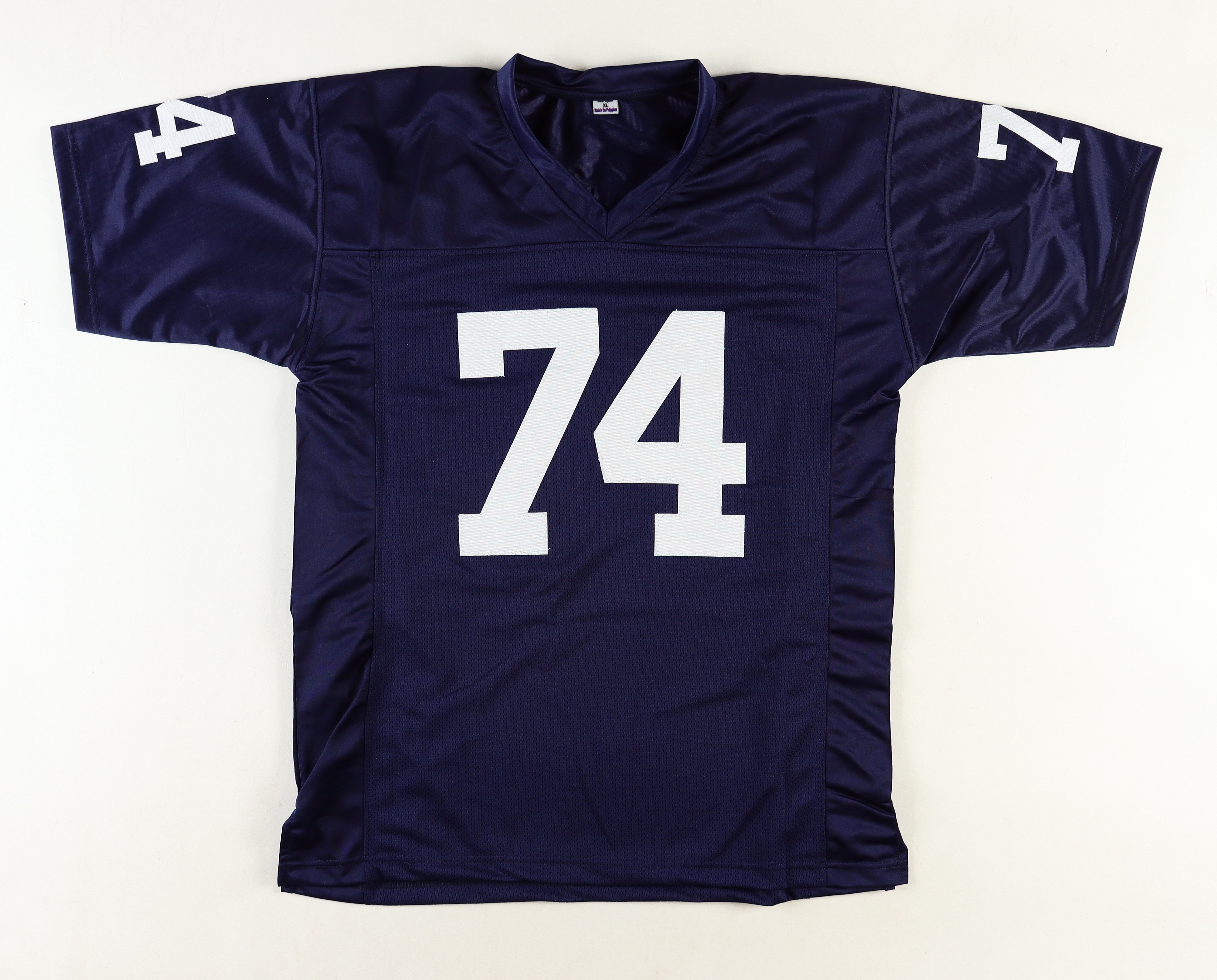 Custom jersey. Everything is sewn on, size XL. Has been hand-signed and inscribed by Olu Fashanu.
