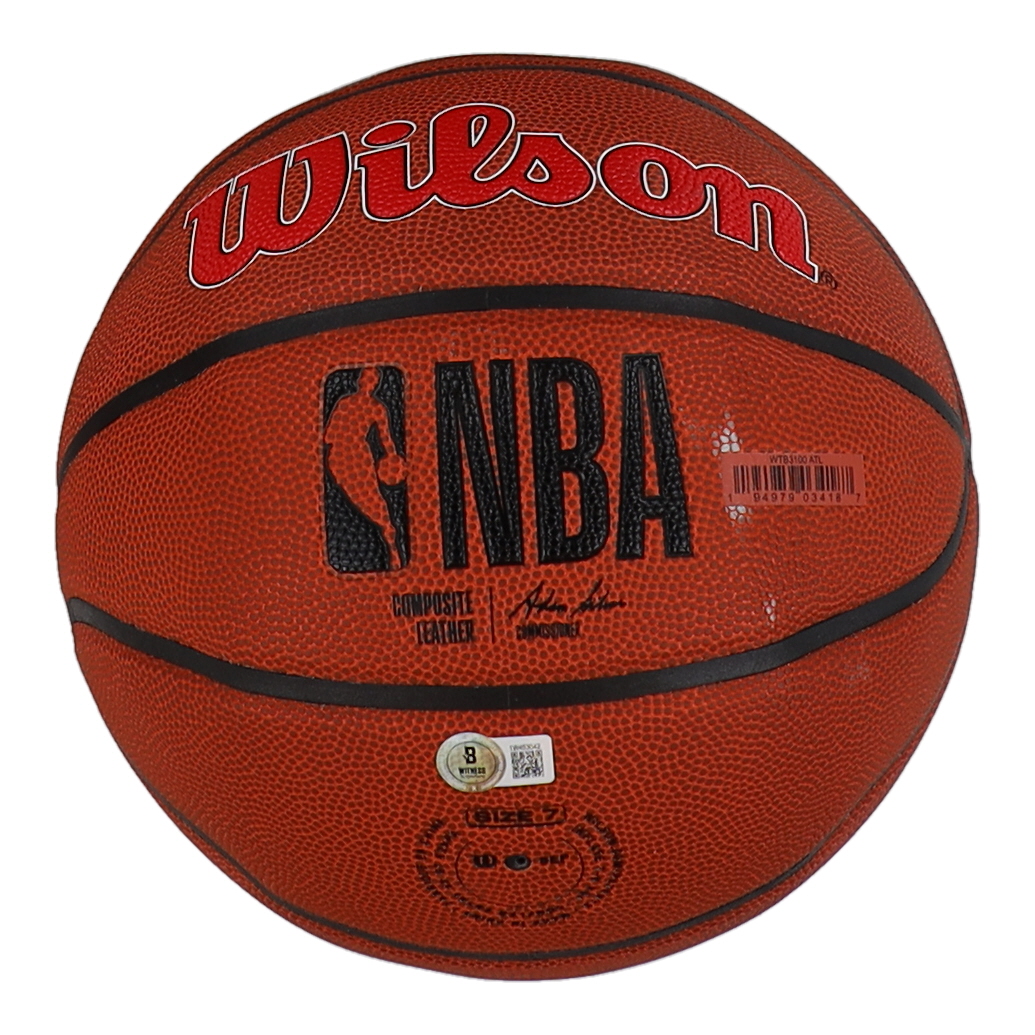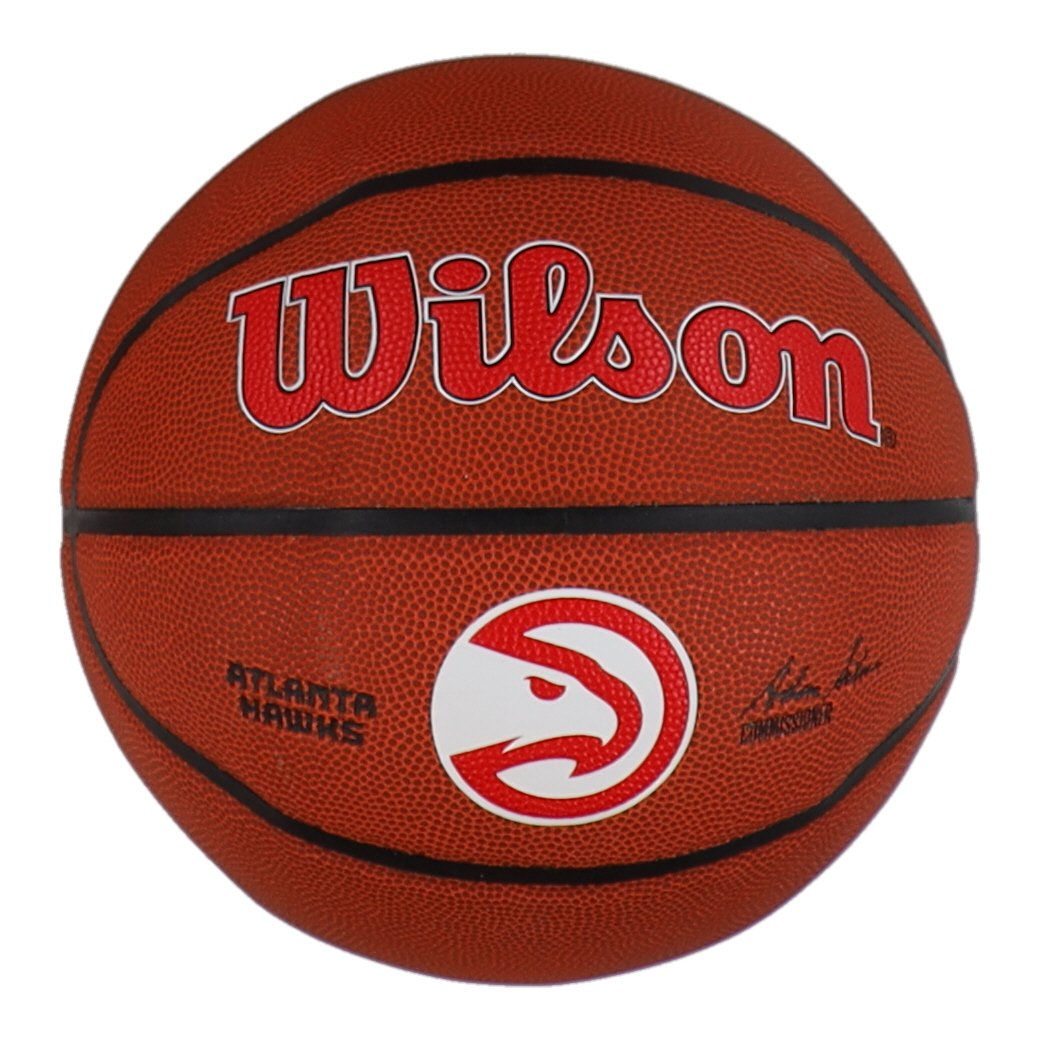 Wilson Atlanta Hawks logo basketball. Hand-signed by Dominique Wilkins (Atlanta Hawks, HOF). Please note, the signature has smudged and there is marker residue on the ball.