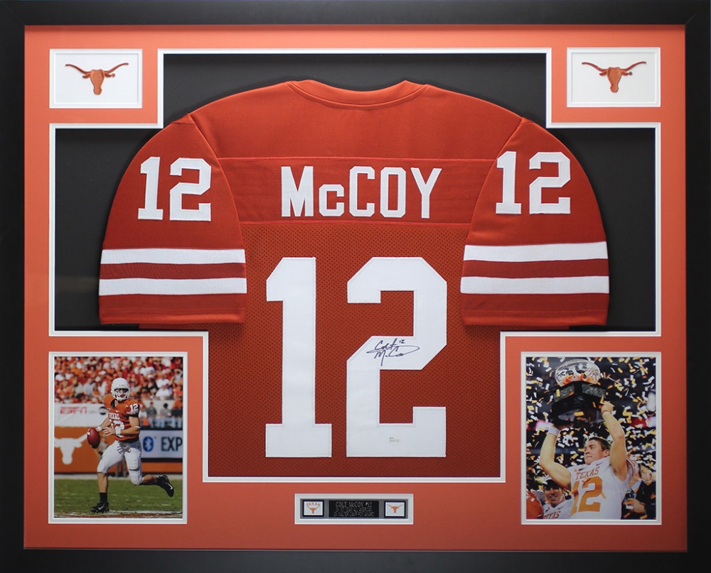 Colt McCoy Signed Texas Longhorns 35" x 43" Custom Framed Jersey (JSA COA)
