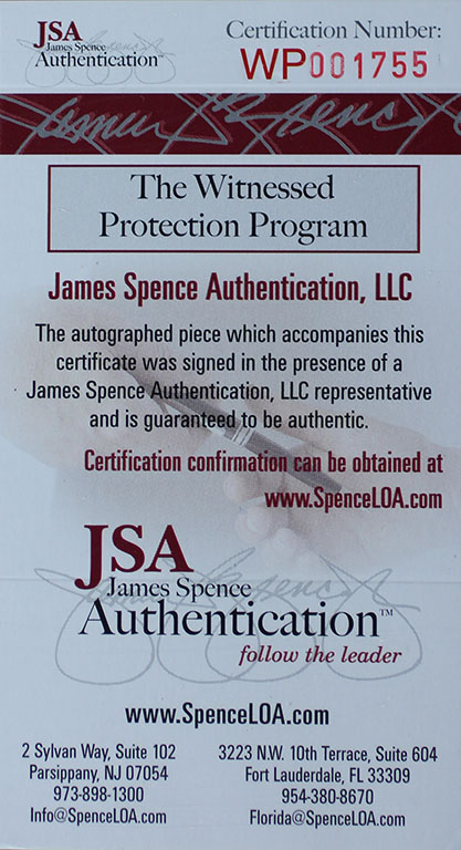 The autograph includes an official James Spence Authentication (JSA) hologram and matching COA for authenticity purposes. The signing of this item was witnessed by JSA.