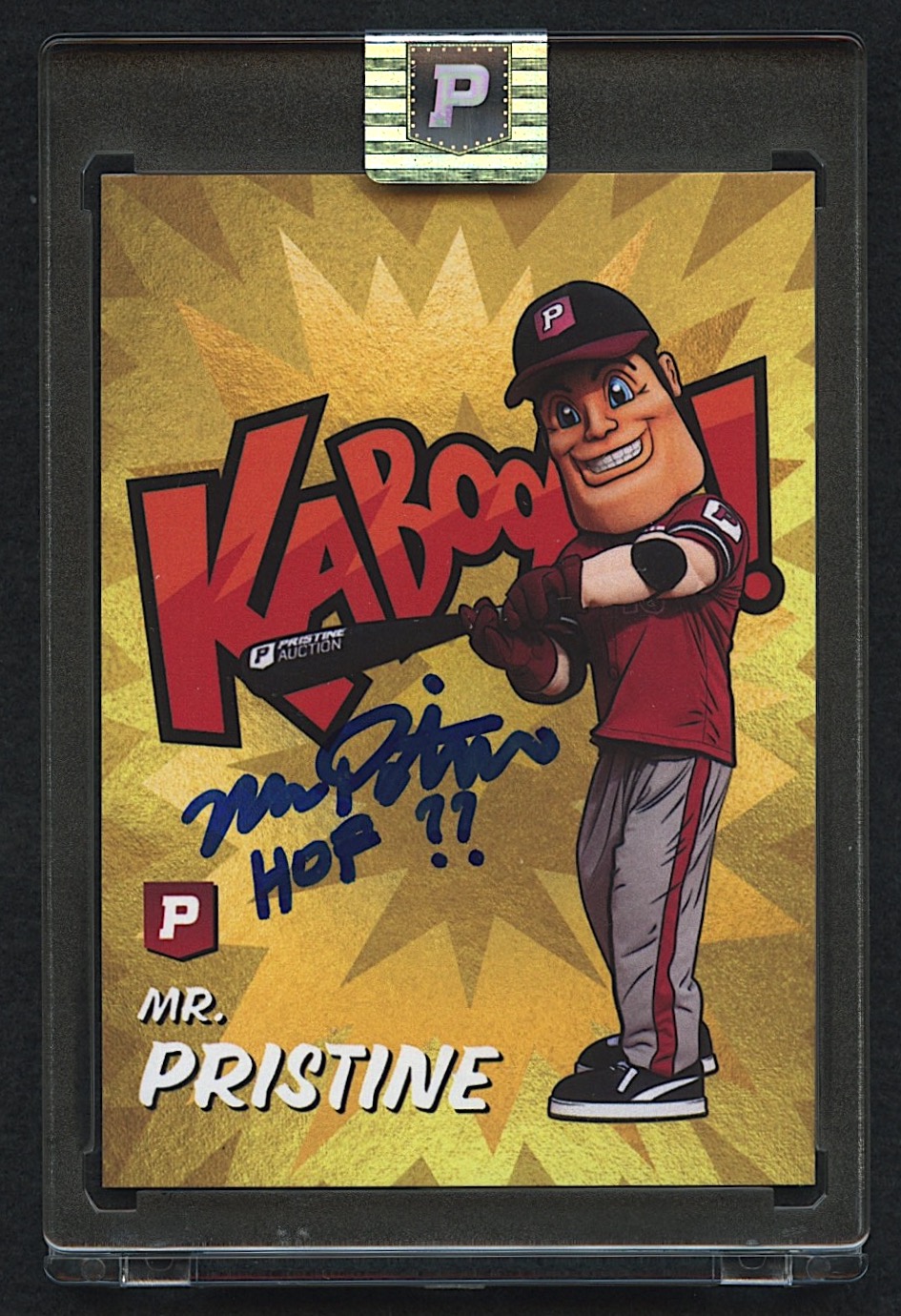 Mr. Pristine requested that his new KABOOM! baseball card be offered at auction. We didn't have the heart to tell him no. So... he signed this special one with the inscription "HOF ??".